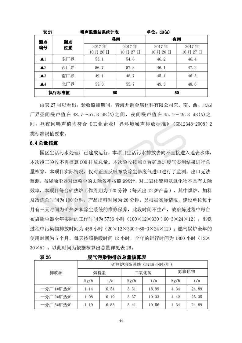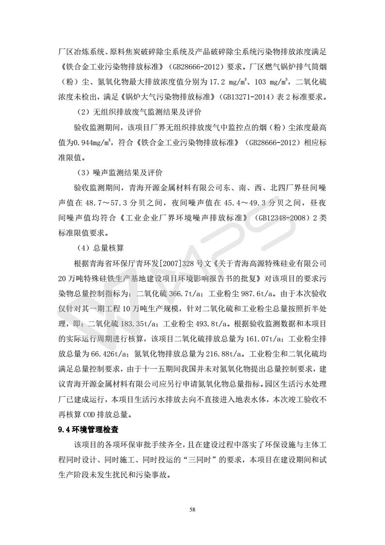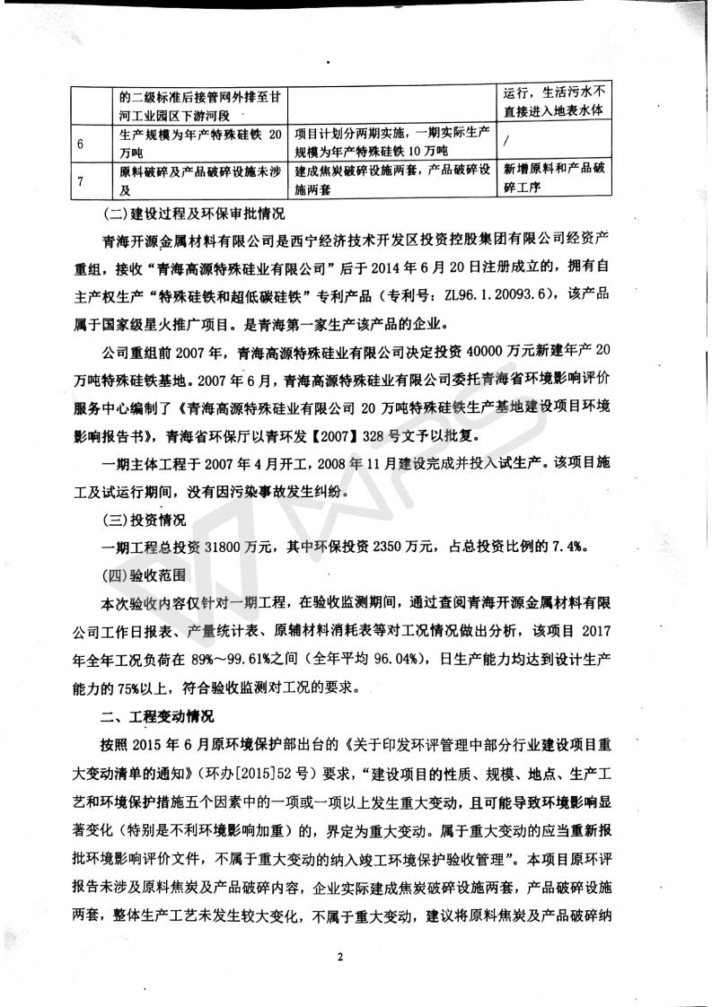 青海開源金屬材料有限公司20萬噸特殊硅鐵生產(chǎn)基地建設(shè)項(xiàng)目(一期工程)竣工環(huán)境保護(hù)驗(yàn)收報告書會后修改20180521