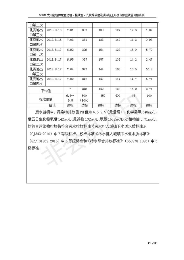 500MW太陽能組件配套邊框、接線盒、光伏焊帶建設(shè)項目竣工環(huán)境保護(hù)驗收監(jiān)測報告表公示發(fā)布日期:(2018-11-16) 點擊次數(shù):2192 |