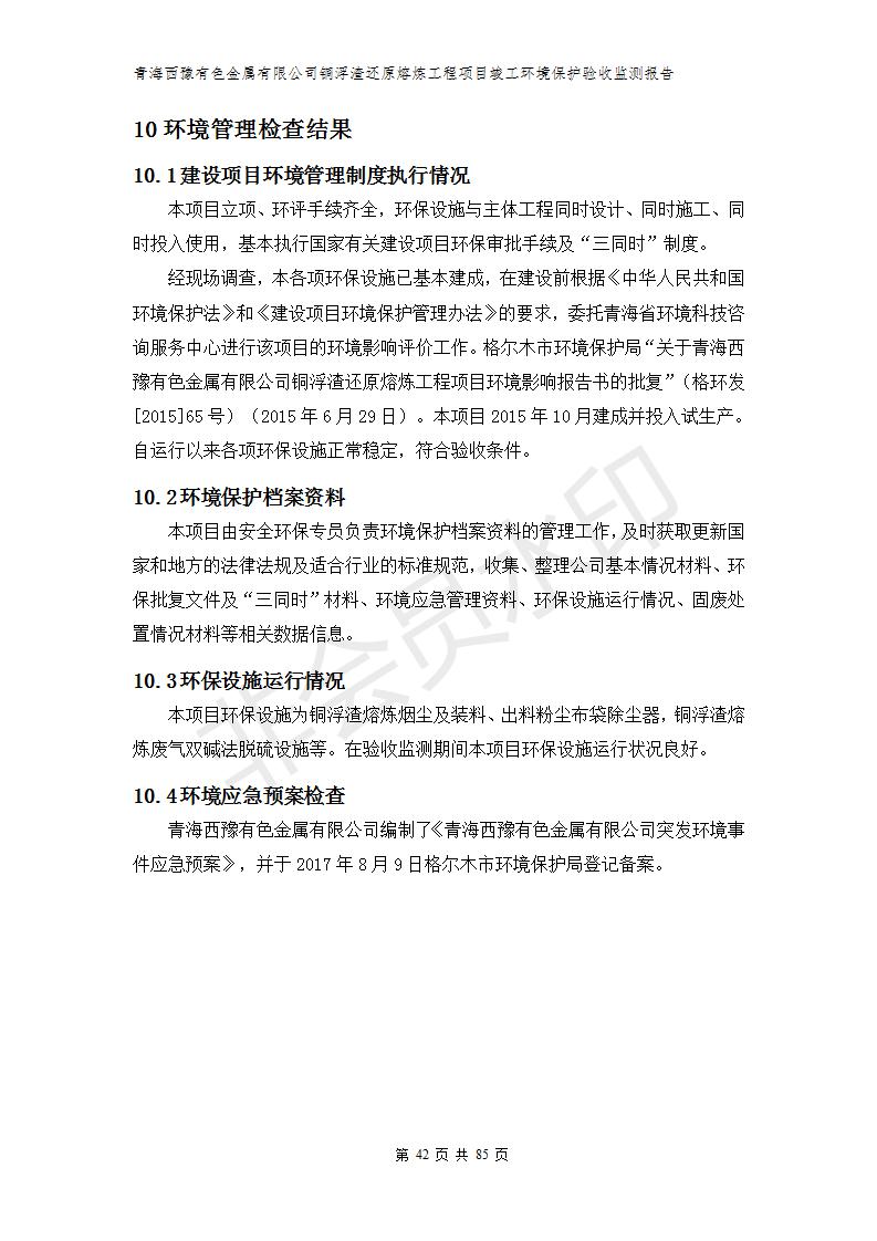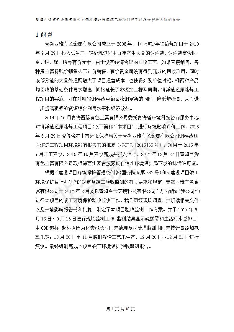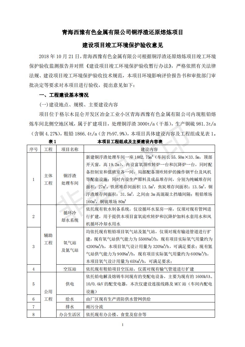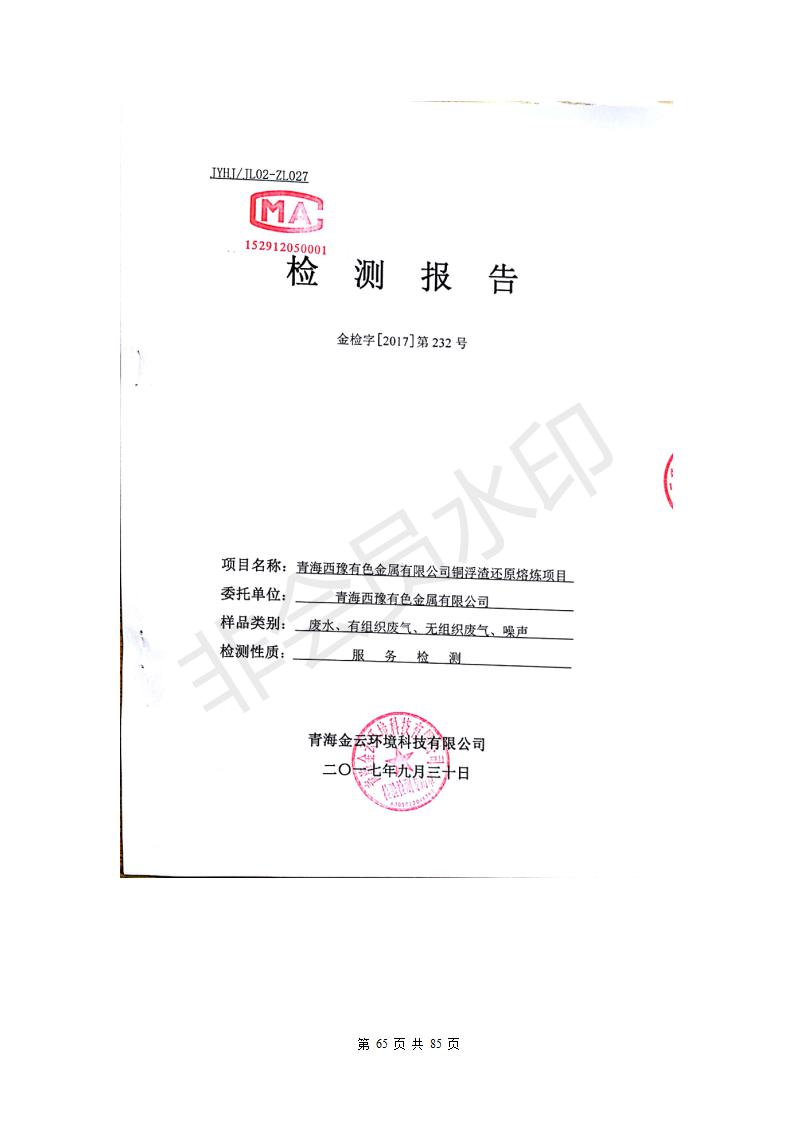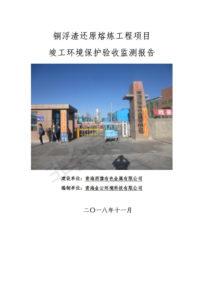 青海西豫有色金屬有限公司銅浮渣還原熔煉工程項(xiàng)目竣工環(huán)境保護(hù)驗(yàn)收監(jiān)測報(bào)告公示發(fā)布日期:(2018-11-23) 點(diǎn)擊次數(shù):2691 |