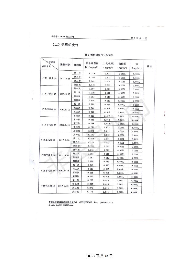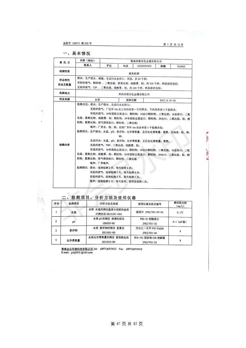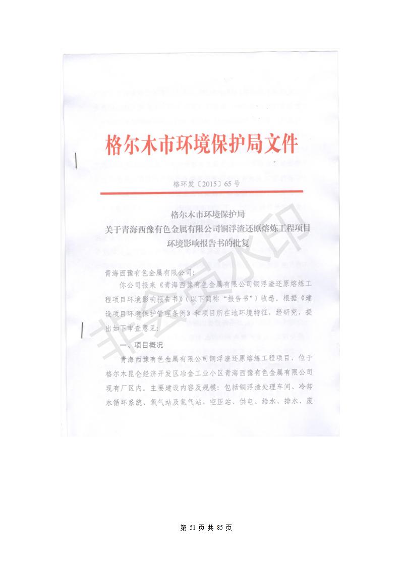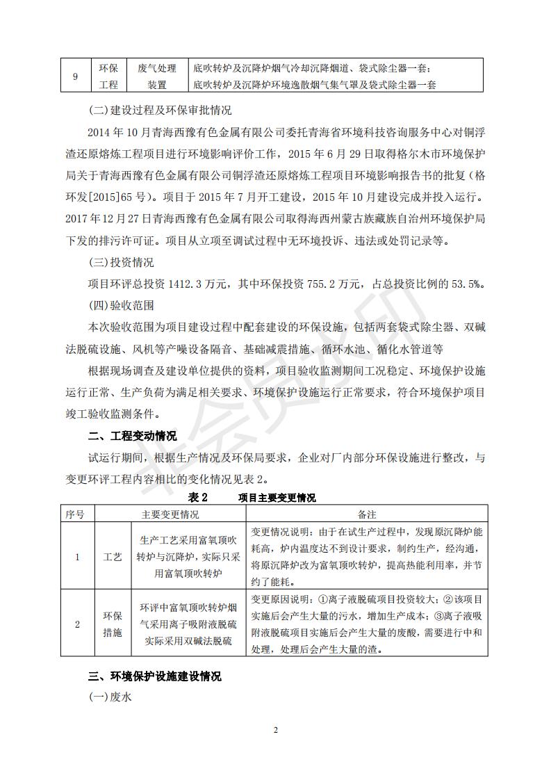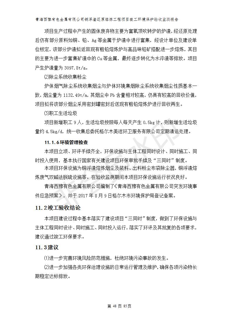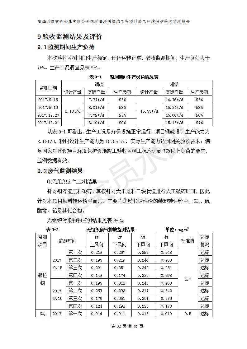 青海西豫有色金屬有限公司銅浮渣還原熔煉工程項(xiàng)目竣工環(huán)境保護(hù)驗(yàn)收監(jiān)測報(bào)告公示發(fā)布日期:(2018-11-23) 點(diǎn)擊次數(shù):2691 |