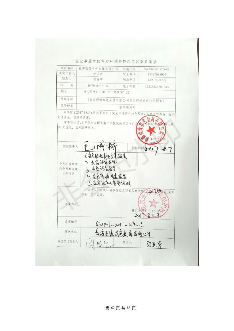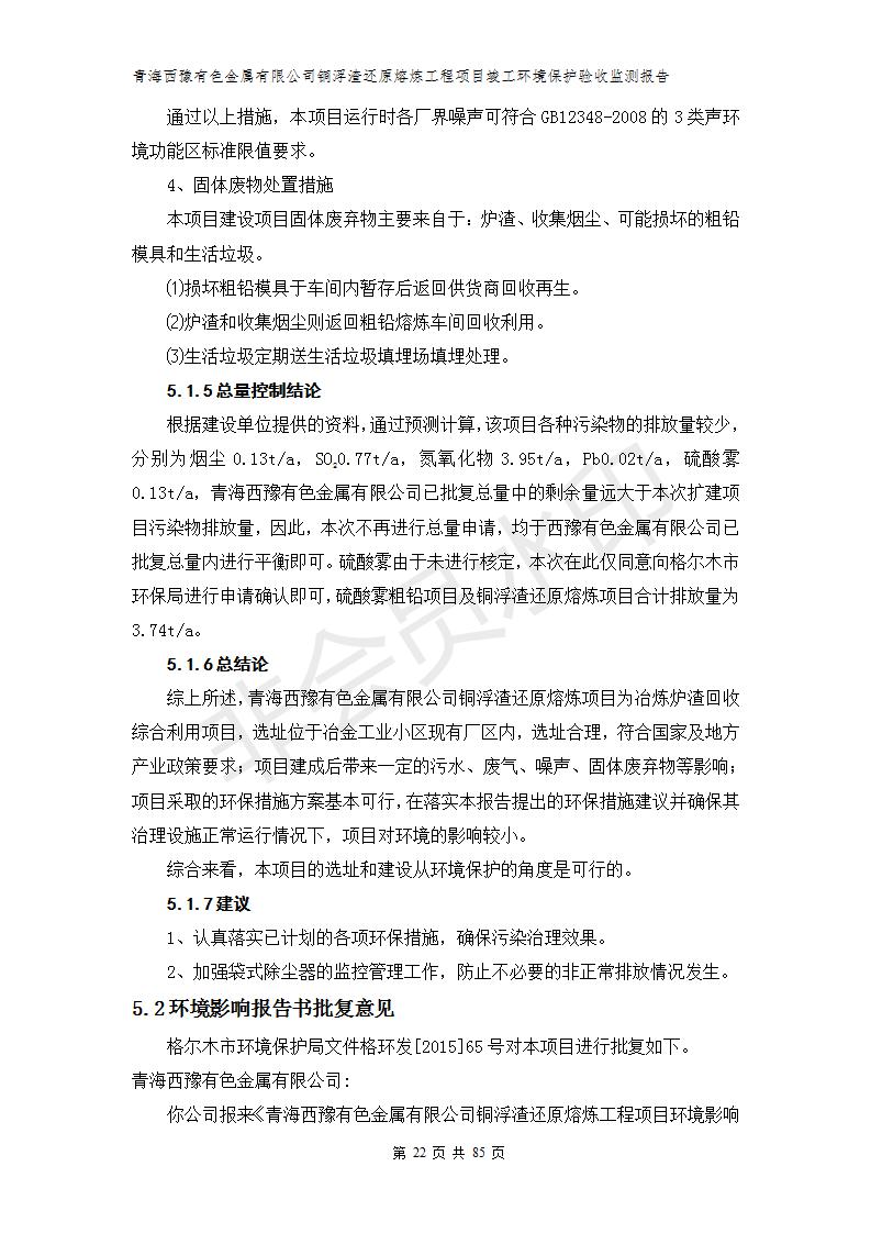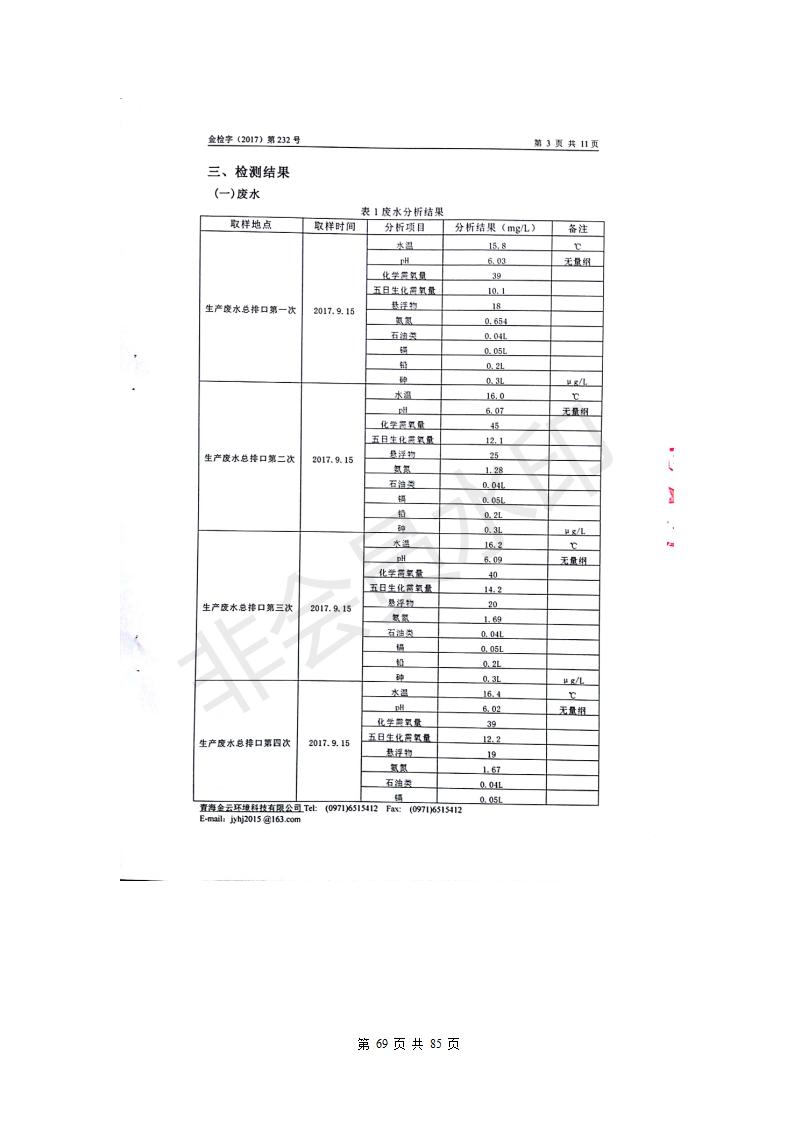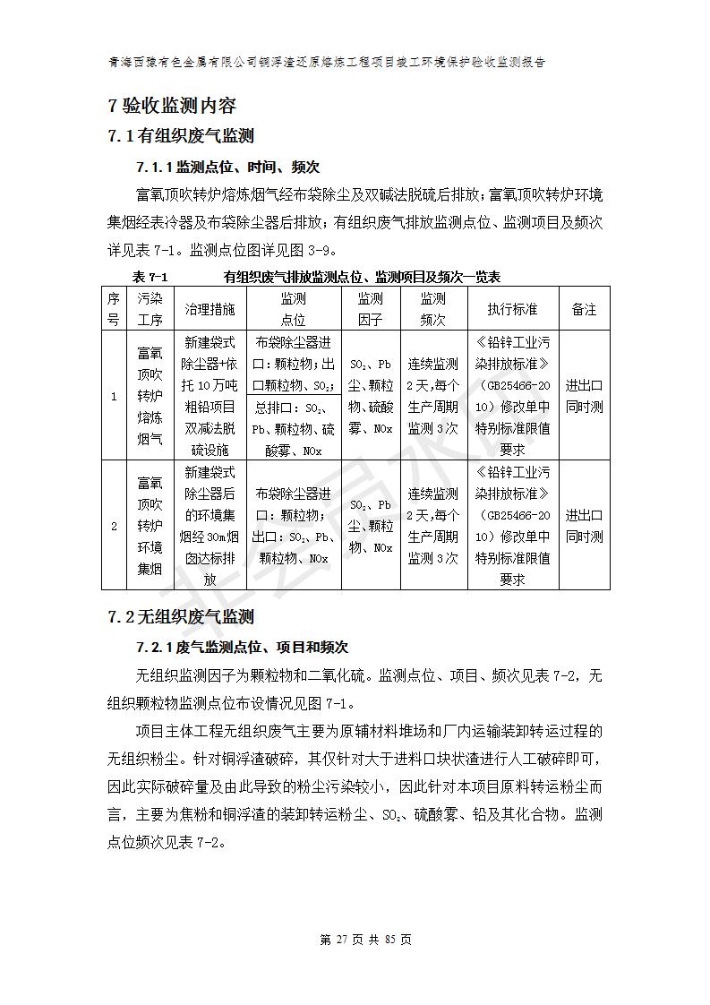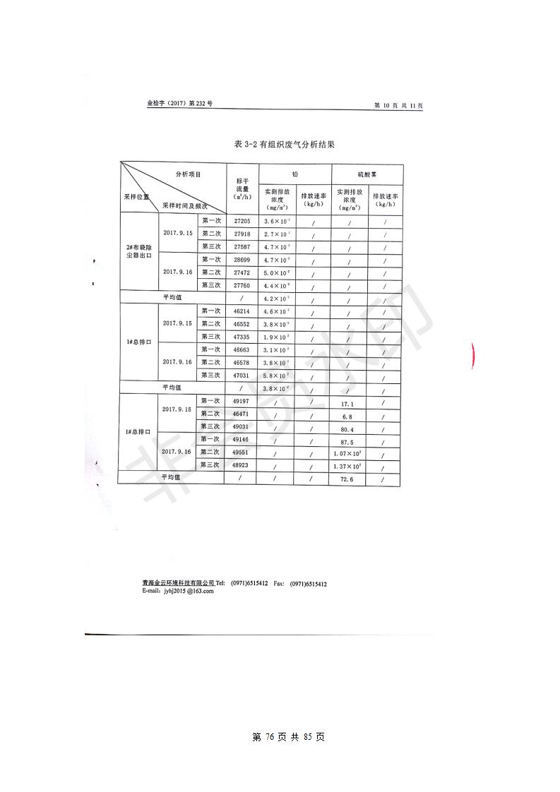 青海西豫有色金屬有限公司銅浮渣還原熔煉工程項(xiàng)目竣工環(huán)境保護(hù)驗(yàn)收監(jiān)測報(bào)告公示發(fā)布日期:(2018-11-23) 點(diǎn)擊次數(shù):2691 |