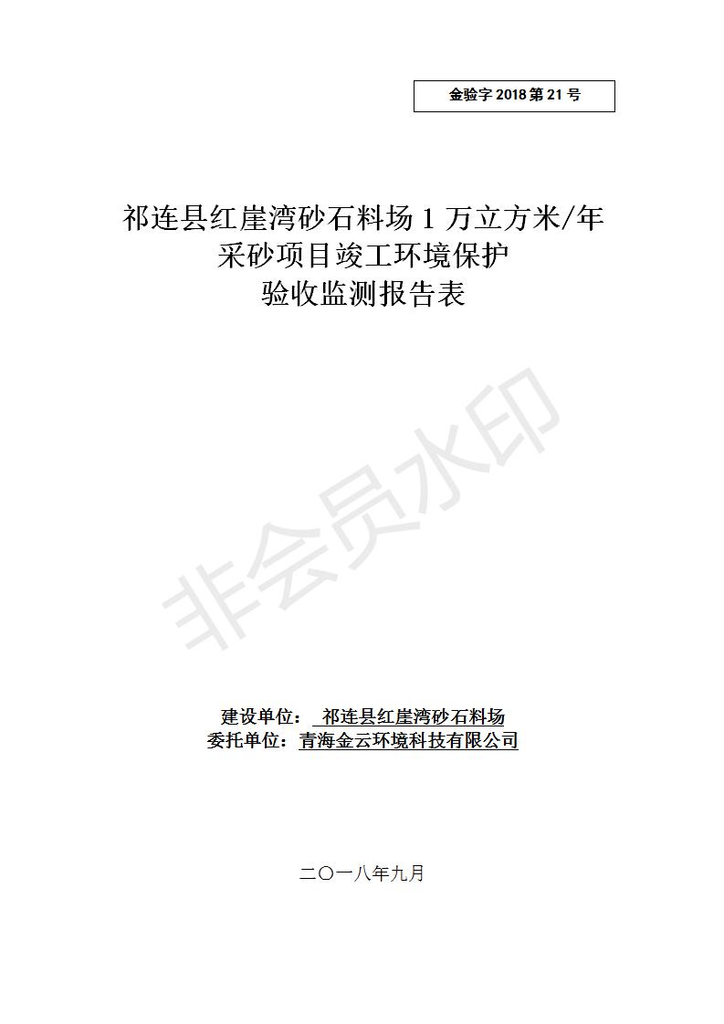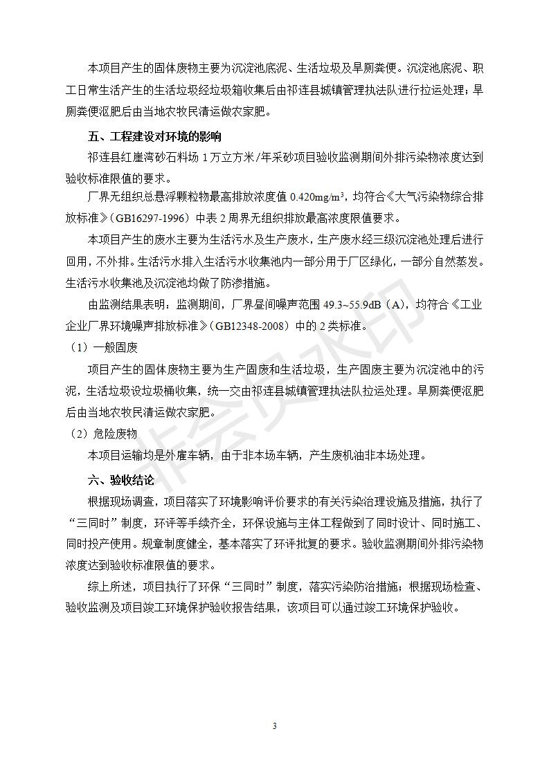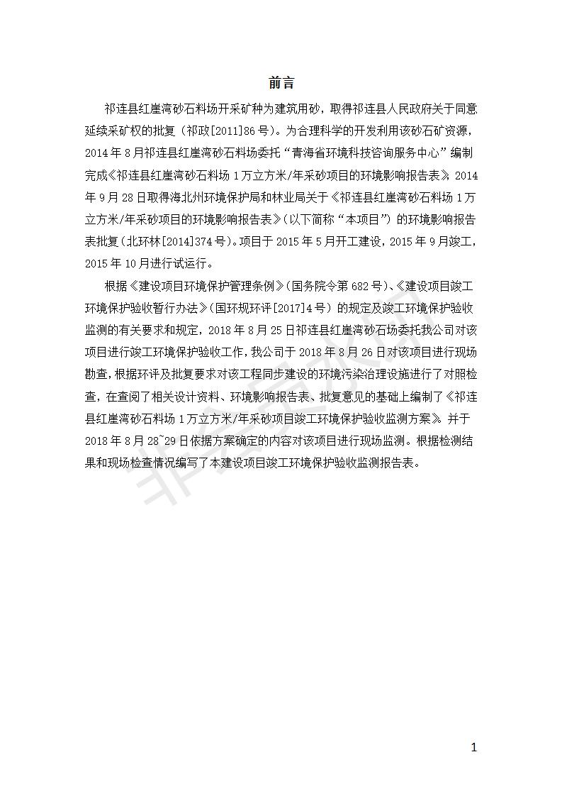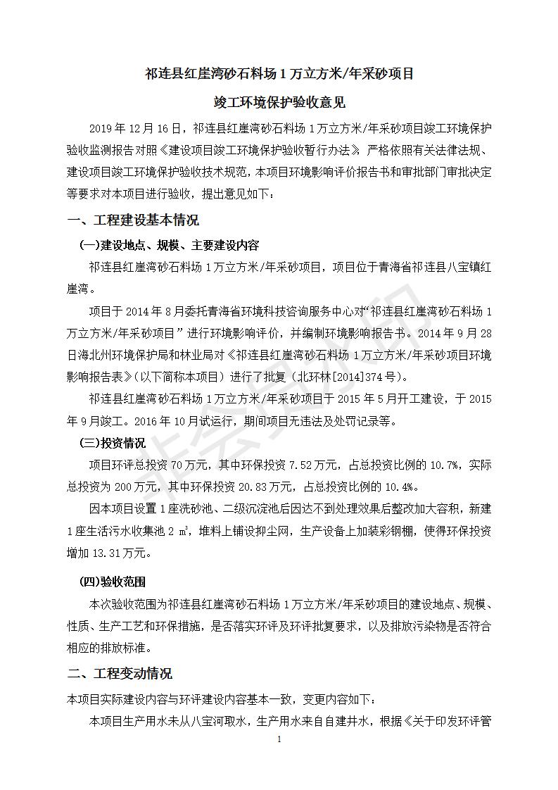 祁連縣紅崖灣砂石料場1萬立方米/年采砂項目竣工環(huán)境保護(hù)驗收監(jiān)測報告表公示