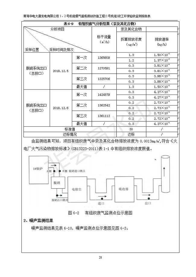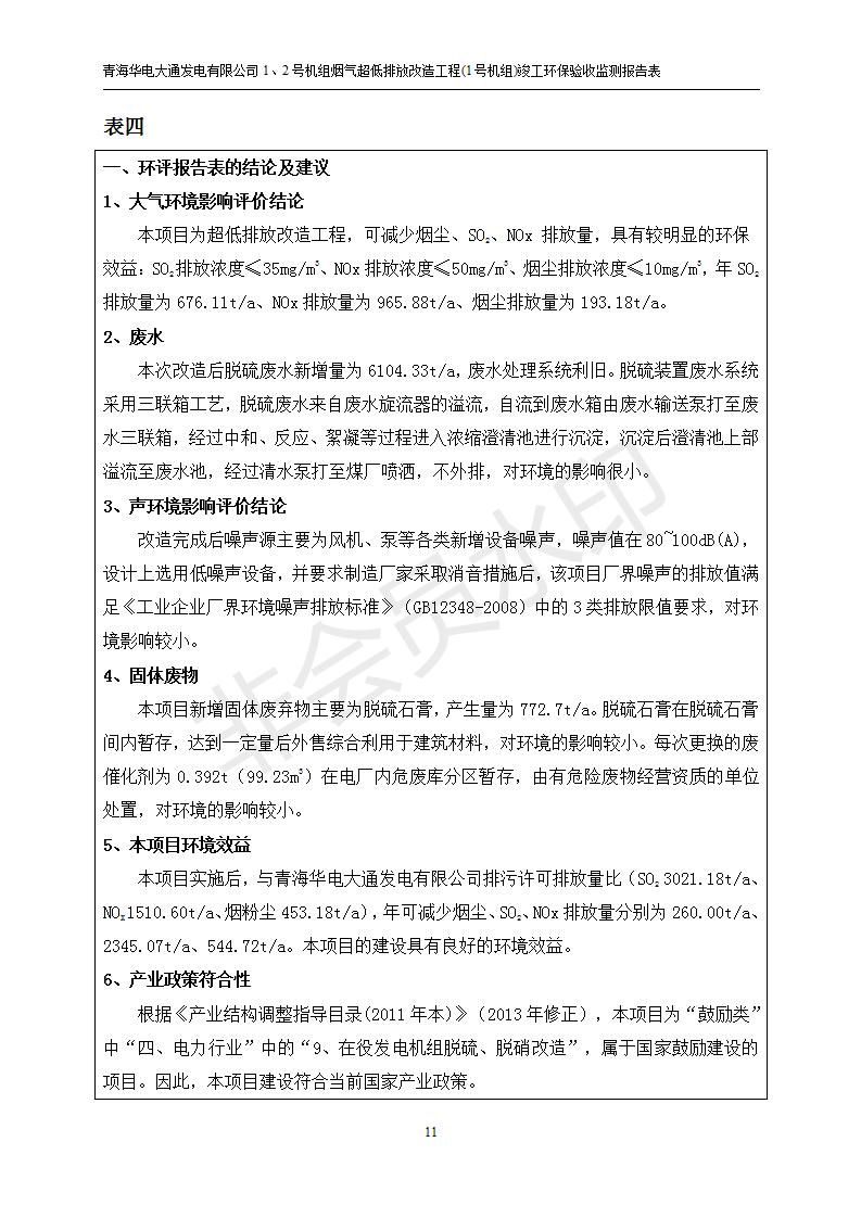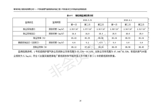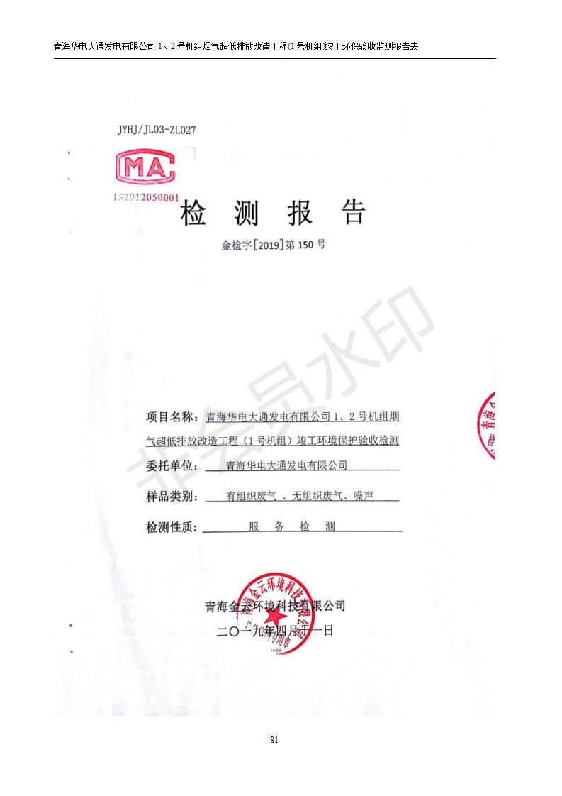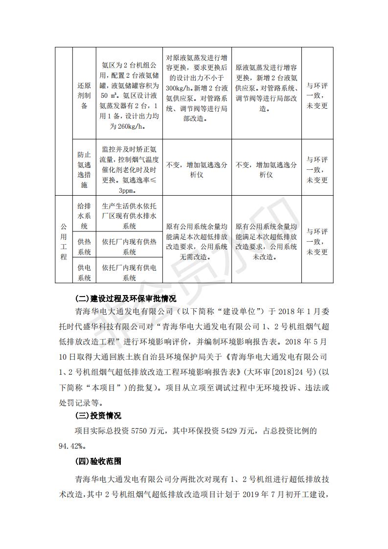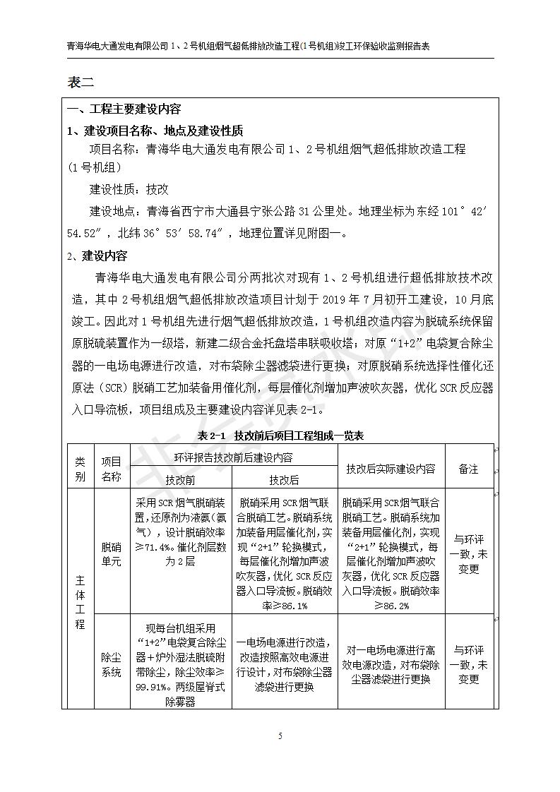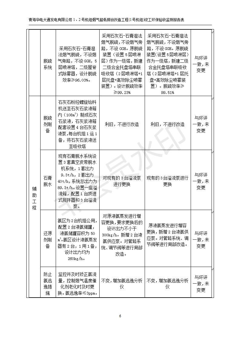 根據(jù)中華人民共和國(guó)國(guó)務(wù)院令第682號(hào)《國(guó)務(wù)院關(guān)于修改〈建設(shè)項(xiàng)目環(huán)境保護(hù)管理?xiàng)l例〉的決定》和《建設(shè)項(xiàng)目竣工環(huán)境保護(hù)驗(yàn)收暫行辦法》(國(guó)務(wù)院令682號(hào)),青海華電大通發(fā)電有限公司1、2號(hào)機(jī)組煙氣超低排放改造工程(1號(hào)機(jī)組) (包括竣工環(huán)境保護(hù)驗(yàn)收監(jiān)測(cè)報(bào)告表和驗(yàn)收意見)公示如下。 一、項(xiàng)目名稱:青海華電大通發(fā)電有限公司1、2號(hào)機(jī)組煙氣超低排放改造工程(1號(hào)機(jī)組) 竣工環(huán)境保護(hù)驗(yàn)收監(jiān)測(cè)報(bào)告表 二、地點(diǎn):青海省西寧市大通縣寧張公路31公里處 三、建設(shè)單位:青海華電大通發(fā)電有限公司 四、建設(shè)內(nèi)容:1號(hào)機(jī)組煙氣超低排放改造,1號(hào)機(jī)組改造內(nèi)容為脫硫系統(tǒng)保留原脫硫裝置作為一級(jí)塔,新建二級(jí)合金托盤塔串聯(lián)吸收塔;對(duì)原“1+2”電袋復(fù)合除塵器的一電場(chǎng)電源進(jìn)行改造,對(duì)布袋除塵器濾袋進(jìn)行更換;對(duì)原脫硝系統(tǒng)選擇性催化還原法(SCR)脫硝工藝加裝備用催化劑,每層催化劑增加聲波吹灰器,優(yōu)化SCR反應(yīng)器入口導(dǎo)流板。 五、聯(lián)系人:張工 六、聯(lián)系電 話:0971-6515411 七、公示時(shí)間:二〇一九年二月十三日至二〇一九年三月十二日 公示期間,對(duì)上述公示內(nèi)容如有異議,請(qǐng)以書面形式反饋,個(gè)人須署真實(shí)姓名,單位須加蓋公章。