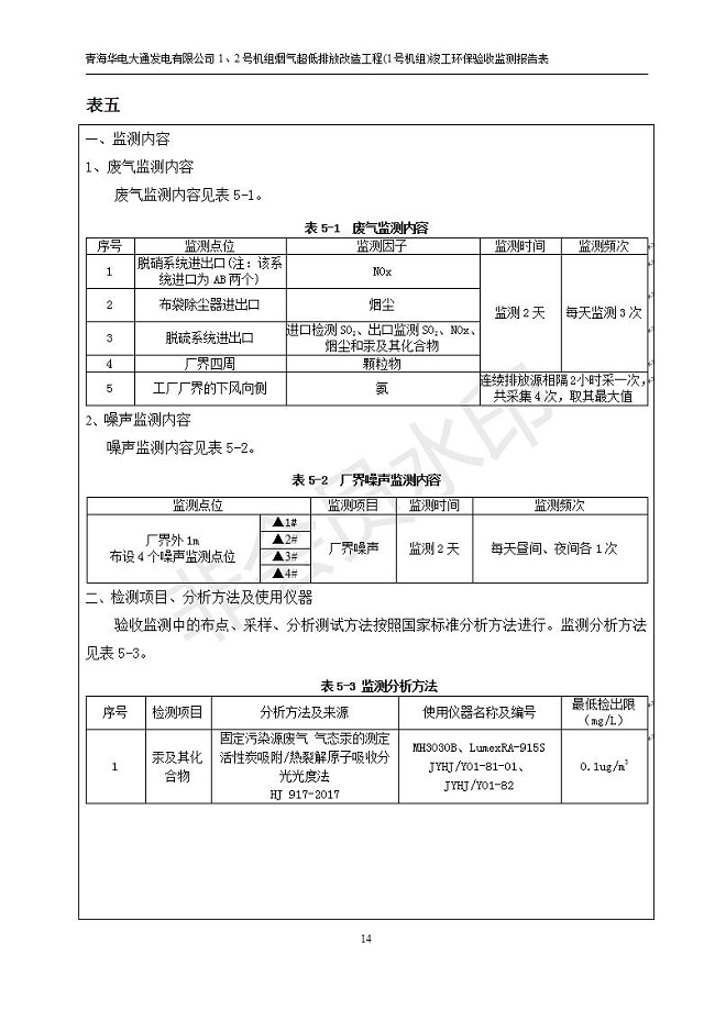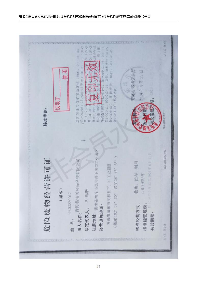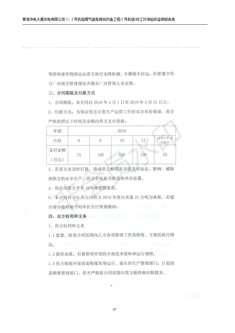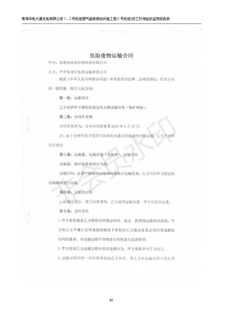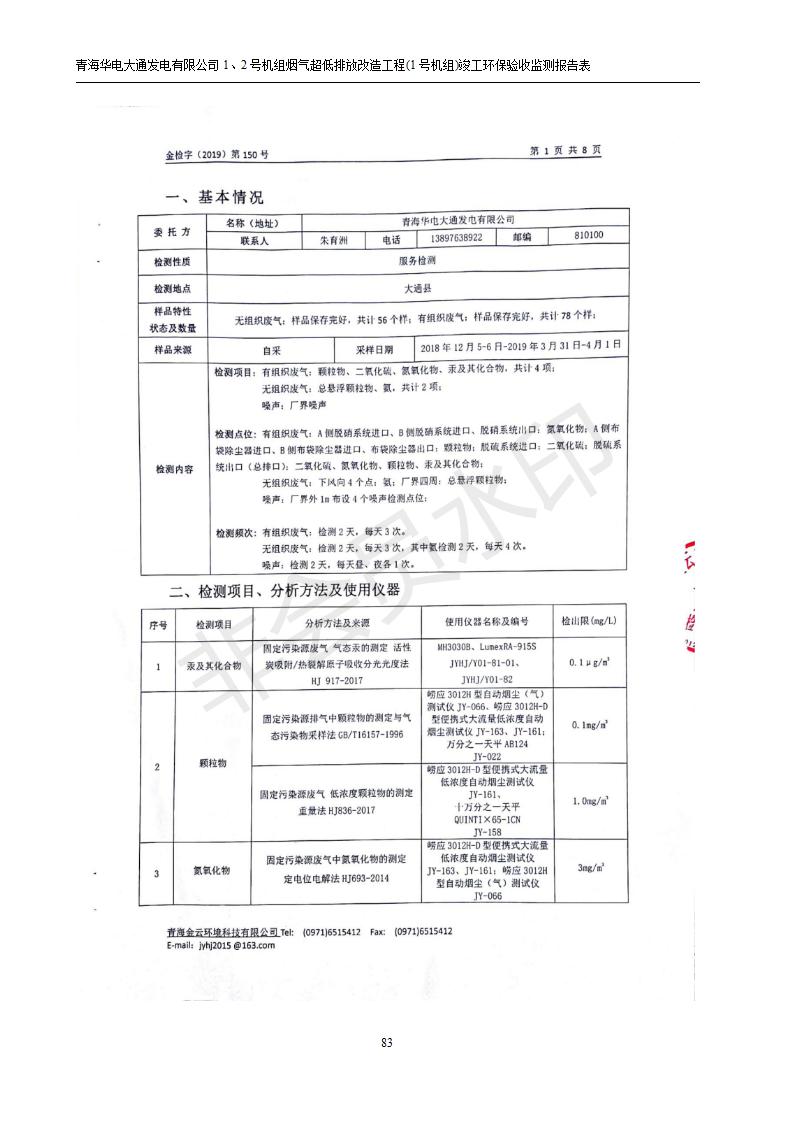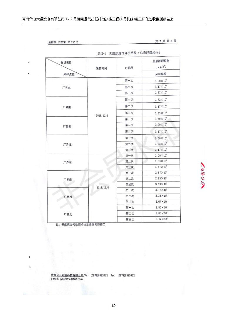 根據(jù)中華人民共和國(guó)國(guó)務(wù)院令第682號(hào)《國(guó)務(wù)院關(guān)于修改〈建設(shè)項(xiàng)目環(huán)境保護(hù)管理?xiàng)l例〉的決定》和《建設(shè)項(xiàng)目竣工環(huán)境保護(hù)驗(yàn)收暫行辦法》(國(guó)務(wù)院令682號(hào)),青海華電大通發(fā)電有限公司1、2號(hào)機(jī)組煙氣超低排放改造工程(1號(hào)機(jī)組) (包括竣工環(huán)境保護(hù)驗(yàn)收監(jiān)測(cè)報(bào)告表和驗(yàn)收意見)公示如下。 一、項(xiàng)目名稱:青海華電大通發(fā)電有限公司1、2號(hào)機(jī)組煙氣超低排放改造工程(1號(hào)機(jī)組) 竣工環(huán)境保護(hù)驗(yàn)收監(jiān)測(cè)報(bào)告表 二、地點(diǎn):青海省西寧市大通縣寧張公路31公里處 三、建設(shè)單位:青海華電大通發(fā)電有限公司 四、建設(shè)內(nèi)容:1號(hào)機(jī)組煙氣超低排放改造,1號(hào)機(jī)組改造內(nèi)容為脫硫系統(tǒng)保留原脫硫裝置作為一級(jí)塔,新建二級(jí)合金托盤塔串聯(lián)吸收塔;對(duì)原“1+2”電袋復(fù)合除塵器的一電場(chǎng)電源進(jìn)行改造,對(duì)布袋除塵器濾袋進(jìn)行更換;對(duì)原脫硝系統(tǒng)選擇性催化還原法(SCR)脫硝工藝加裝備用催化劑,每層催化劑增加聲波吹灰器,優(yōu)化SCR反應(yīng)器入口導(dǎo)流板。 五、聯(lián)系人:張工 六、聯(lián)系電 話:0971-6515411 七、公示時(shí)間:二〇一九年二月十三日至二〇一九年三月十二日 公示期間,對(duì)上述公示內(nèi)容如有異議,請(qǐng)以書面形式反饋,個(gè)人須署真實(shí)姓名,單位須加蓋公章。