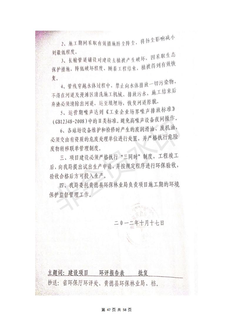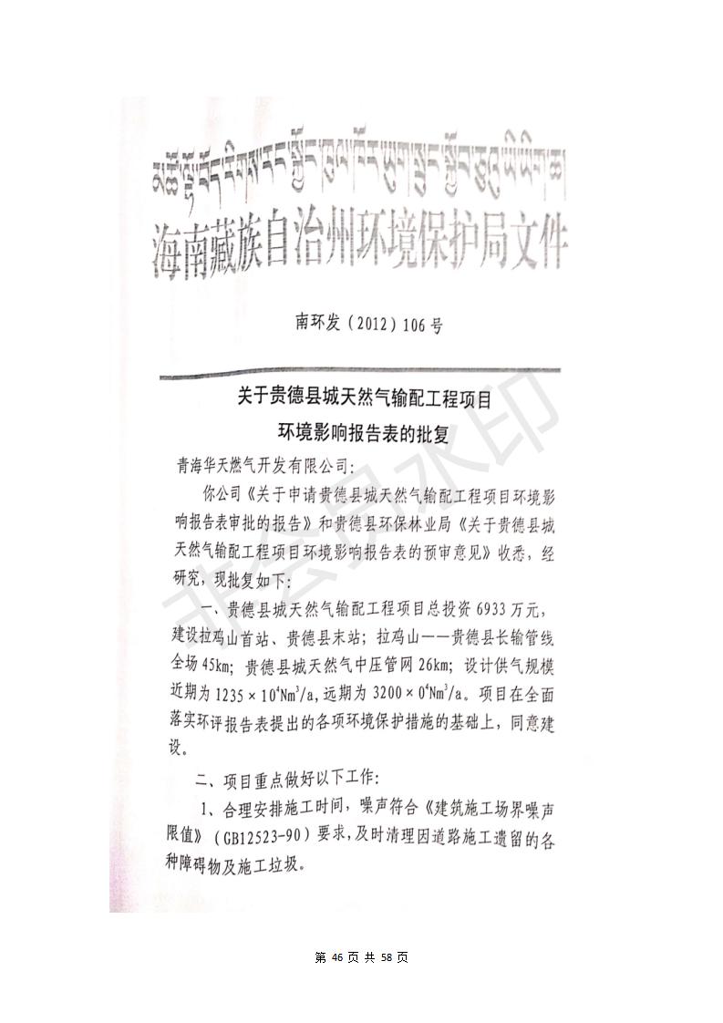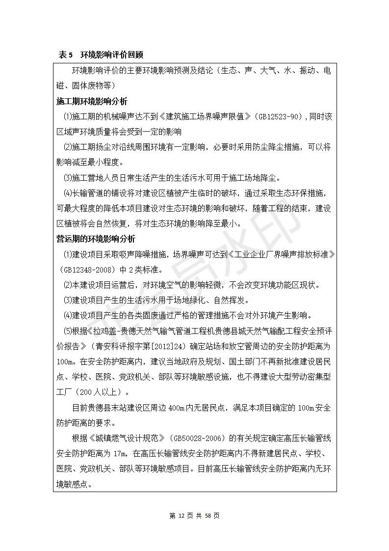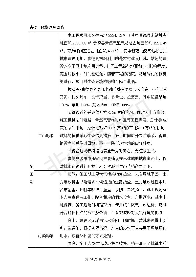 貴德縣城輸配管線工程竣工環(huán)境保護(hù)驗(yàn)收調(diào)查表公示