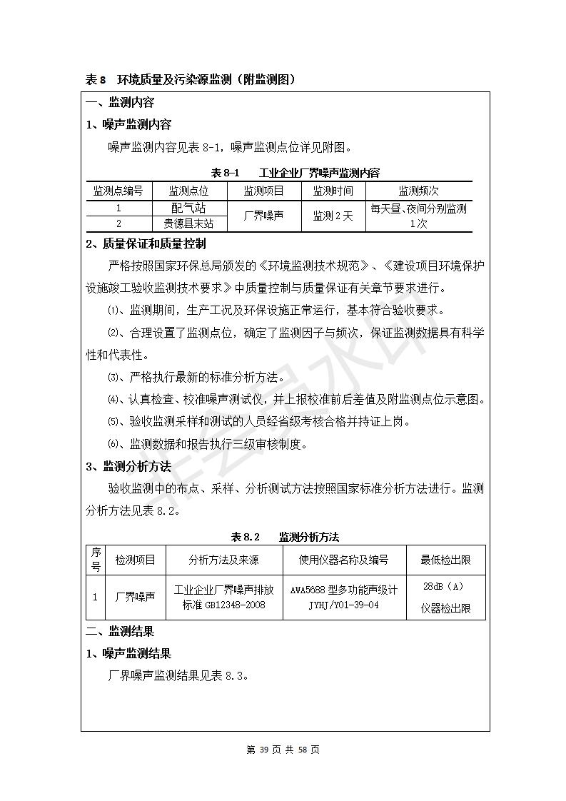 根據(jù)中華人民共和國(guó)務(wù)院令第682號(hào)《國(guó)務(wù)院關(guān)于修改〈建設(shè)項(xiàng)目環(huán)境保護(hù)管理?xiàng)l例〉的決定》和《建設(shè)項(xiàng)目竣工環(huán)境保護(hù)驗(yàn)收暫行辦法》(國(guó)務(wù)院令682號(hào)),貴德縣城輸配管線工程竣工環(huán)境保護(hù)驗(yàn)收內(nèi)容(包括竣工環(huán)境保護(hù)驗(yàn)收調(diào)查表和驗(yàn)收意見(jiàn))公示如下。 一、項(xiàng)目名稱(chēng):貴德縣城天然氣輸配工程 二、地點(diǎn):拉雞蓋澀寧蘭復(fù)線22#閥室-貴德縣城 三、建設(shè)單位:貴德華天燃?xì)忾_(kāi)發(fā)有限公司 四、建設(shè)內(nèi)容:貴德縣末站、貴德縣配氣站、貴德縣中壓管網(wǎng)、拉雞蓋22#閥室-貴德縣城長(zhǎng)輸管線 五、公示時(shí)間:二〇一九年三月十一日至二〇一九年四月八日 六、聯(lián)系人:張工 公示期間,對(duì)上述公示內(nèi)容如有異議,請(qǐng)以書(shū)面形式反饋,個(gè)人須署真實(shí)姓名,單位須加蓋公章。