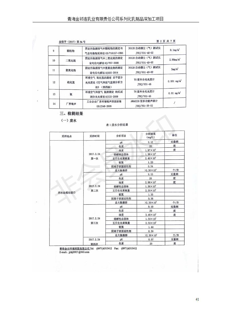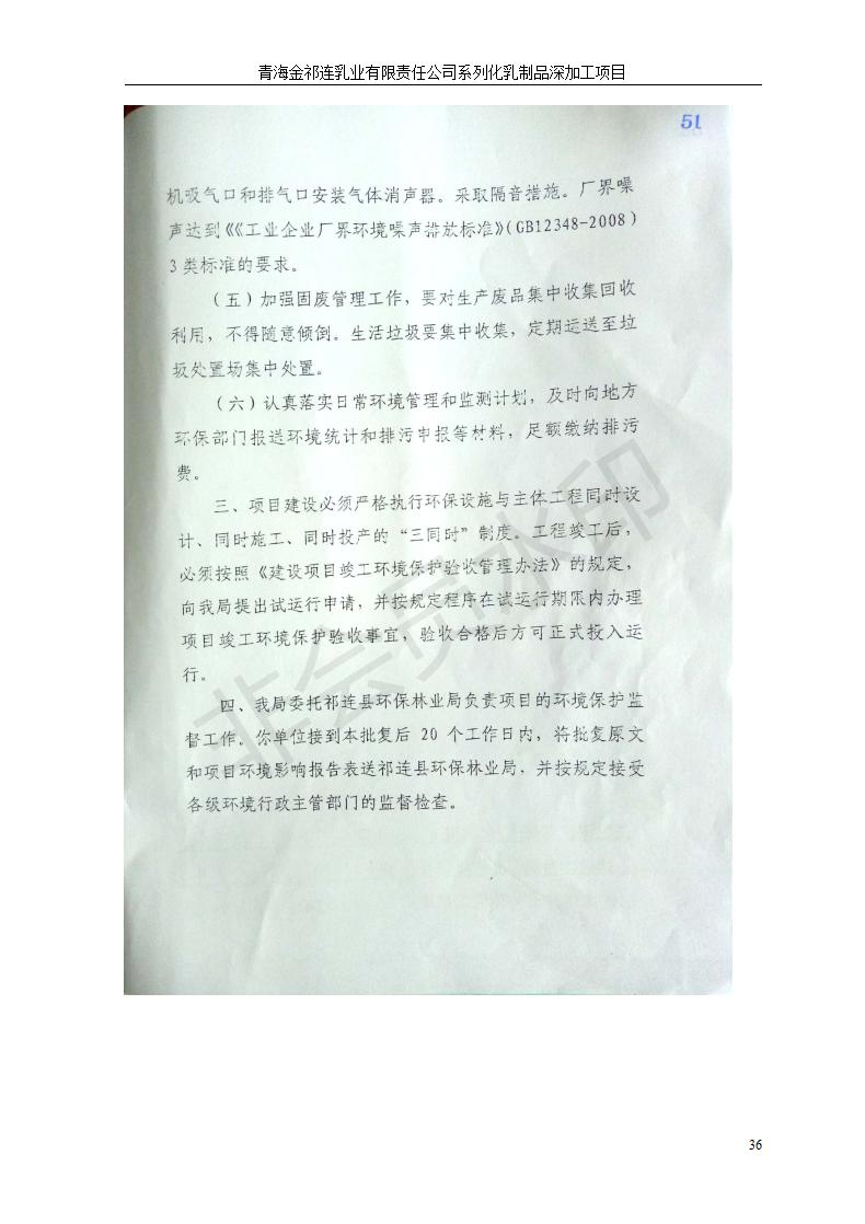 根據(jù)中華人民共和國國務(wù)院令第682號《國務(wù)院關(guān)于修改〈建設(shè)項(xiàng)目環(huán)境保護(hù)管理?xiàng)l例〉的決定》和《建設(shè)項(xiàng)目竣工環(huán)境保護(hù)驗(yàn)收暫行辦法》(國務(wù)院令682號),青海金祁連乳業(yè)有限責(zé)任公司系列化乳制品深加工項(xiàng)目(包括竣工環(huán)境保護(hù)驗(yàn)收監(jiān)測報(bào)告表和驗(yàn)收意見)公示如下。 一、項(xiàng)目名稱:青海金祁連乳業(yè)有限責(zé)任公司系列化乳制品深加工項(xiàng)目 二、地點(diǎn):海北藏族自治州祁連縣冰溝農(nóng)牧產(chǎn)業(yè)化生態(tài)園區(qū) 三、建設(shè)單位:青海金祁連乳業(yè)有限責(zé)任公司 四、建設(shè)內(nèi)容:本項(xiàng)目新征工業(yè)用地40畝,新建生產(chǎn)車間2200 m2、采用多聯(lián)跨鋼結(jié)構(gòu)廠房,跨度為24米,長度為80米,柱間距為6米,標(biāo)高為4.8米。廠房內(nèi)部根據(jù)產(chǎn)品生產(chǎn)工藝及工序要求分為不同的工作區(qū)域和車間辦公室。建設(shè)有保鮮冷庫800 m2、普通倉庫500m2、污水處理站房160 m2、鍋爐房和配電室159 m2、綜合辦公樓1200 m2、職工食堂和宿舍500 m2、其他輔助用房35 m2、蓄水池100 m2以及與土建工程相關(guān)聯(lián)的水、電、熱官網(wǎng)等輔助設(shè)施。 五、聯(lián)系人:張工 六、聯(lián)系電 話:0971-6515411 七、公示時間:二〇一九年七月十日至二〇一九年八月六日 公示期間,對上述公示內(nèi)容如有異議,請以書面形式反饋,個人須署真實(shí)姓名,單位須加蓋公章。