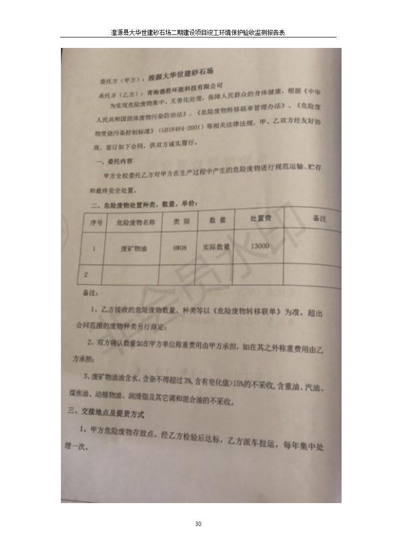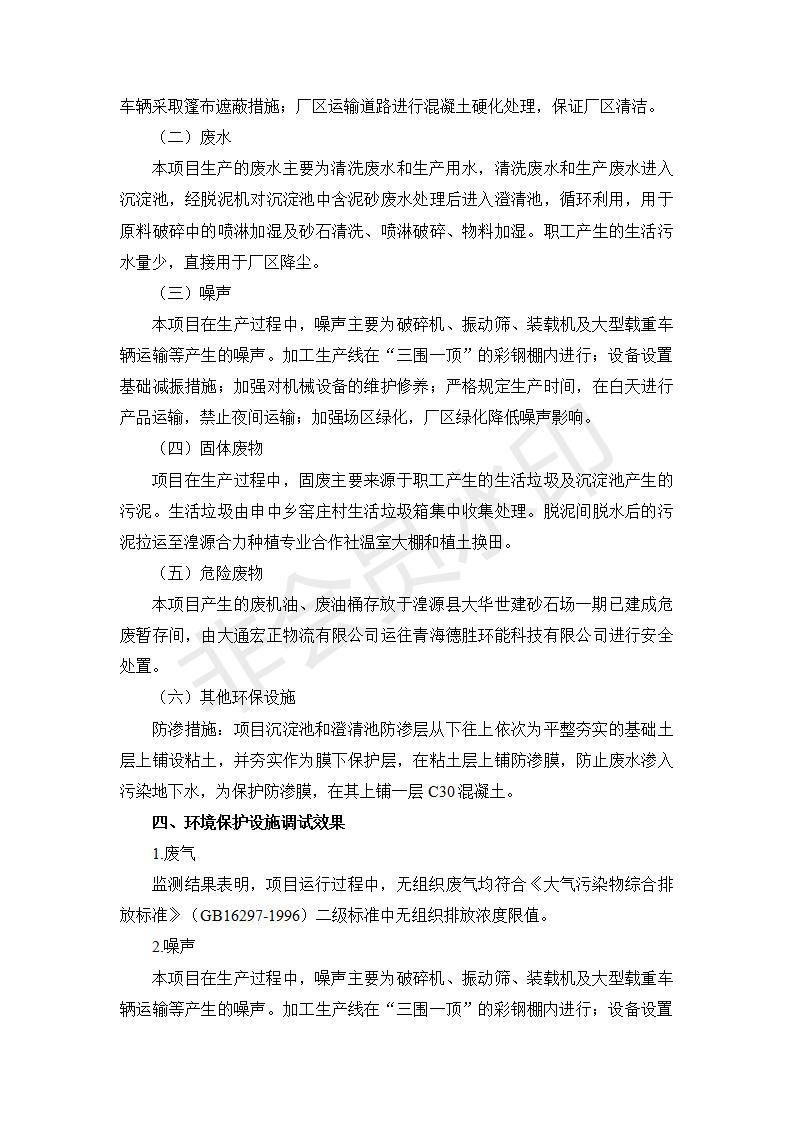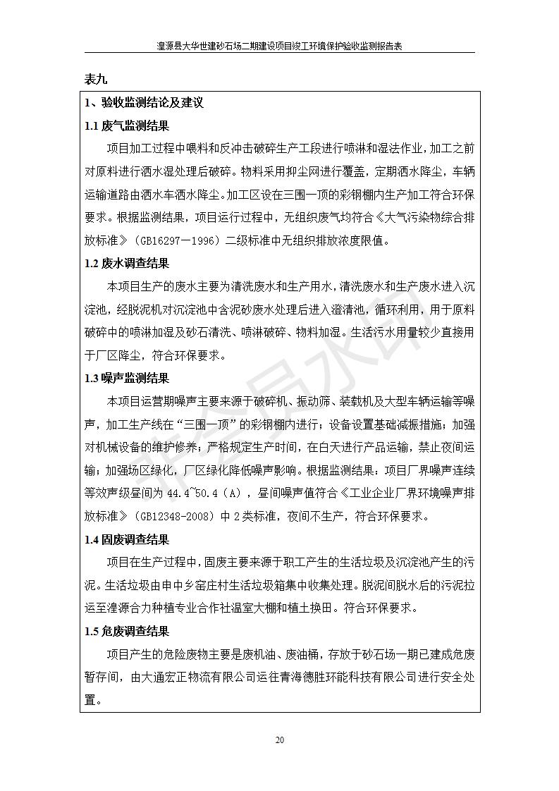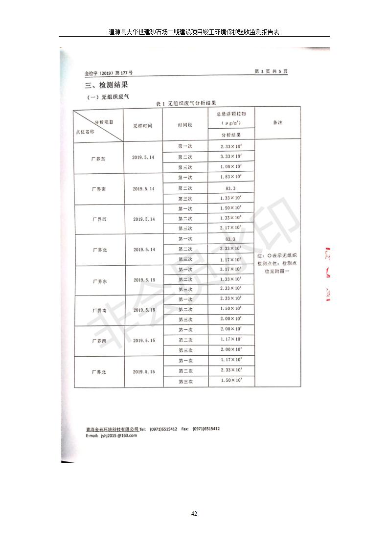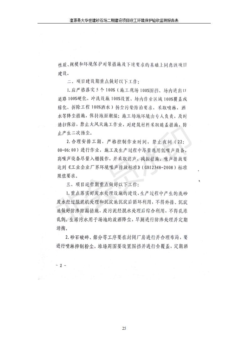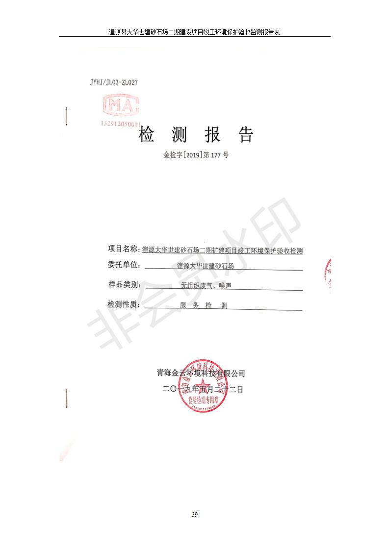 根據(jù)中華人民共和國國務(wù)院令第682號《國務(wù)院關(guān)于修改〈建設(shè)項(xiàng)目環(huán)境保護(hù)管理?xiàng)l例〉的決定》和《建設(shè)項(xiàng)目竣工環(huán)境保護(hù)驗(yàn)收暫行辦法》(國務(wù)院令682號),湟源大華世建砂石場湟源縣大華世建砂石場二期建設(shè)項(xiàng)目(包括竣工環(huán)境保護(hù)驗(yàn)收監(jiān)測報(bào)告表和驗(yàn)收意見)公示如下。 一、項(xiàng)目名稱:湟源縣大華世建砂石場二期建設(shè)項(xiàng)目 二、地點(diǎn):湟源縣申中鄉(xiāng)窯莊村沙崗大小灣 三、建設(shè)單位:湟源大華世建砂石場 四、建設(shè)內(nèi)容:項(xiàng)目主要建設(shè)砂石料產(chǎn)品加工生產(chǎn)區(qū)、原料堆場、產(chǎn)品堆場、辦公區(qū)等。五、聯(lián)系人:張工 六、聯(lián)系電 話:0971-6515411 七、公示時間:二〇一九年七月二十五日至二〇一九年八月二十一日公示期間,對上述公示內(nèi)容如有異議,請以書面形式反饋,個人須署真實(shí)姓名,單位須加蓋公章。