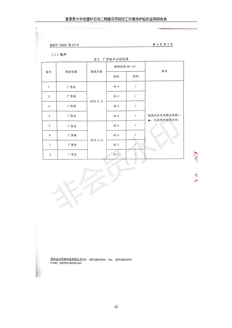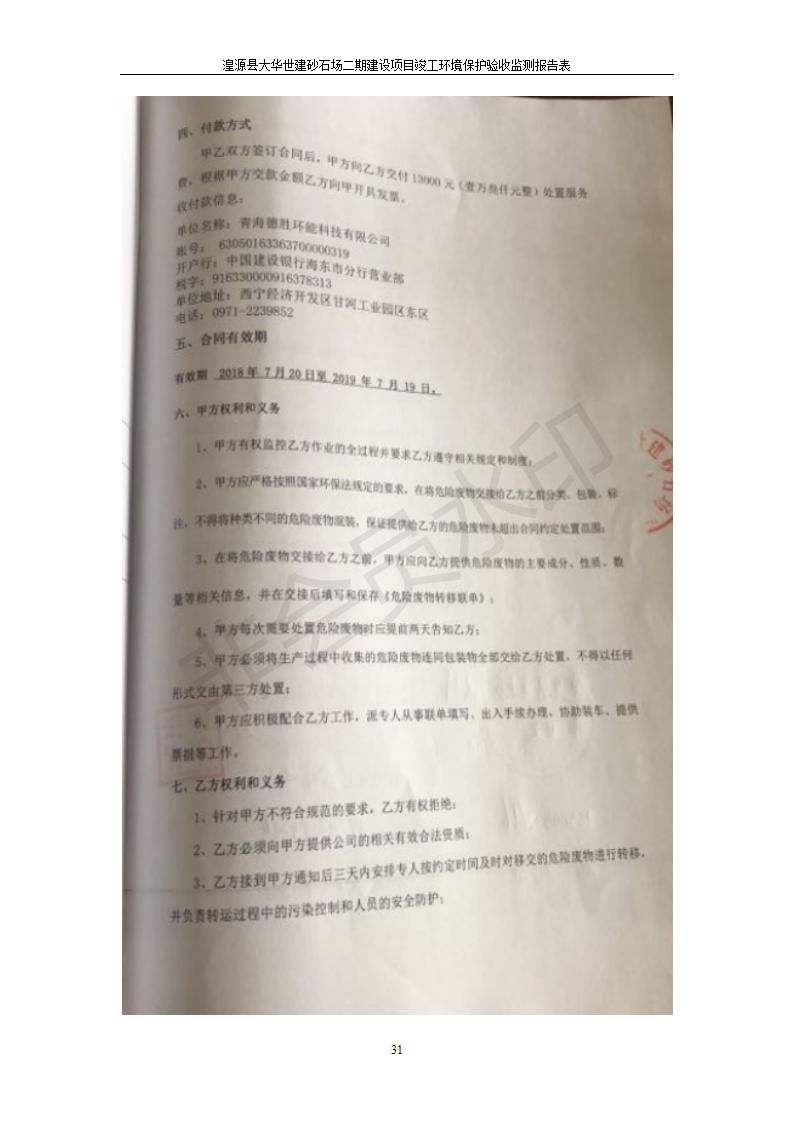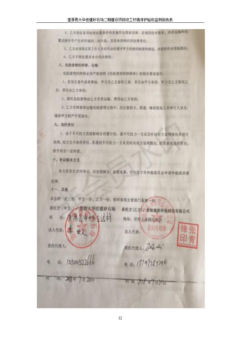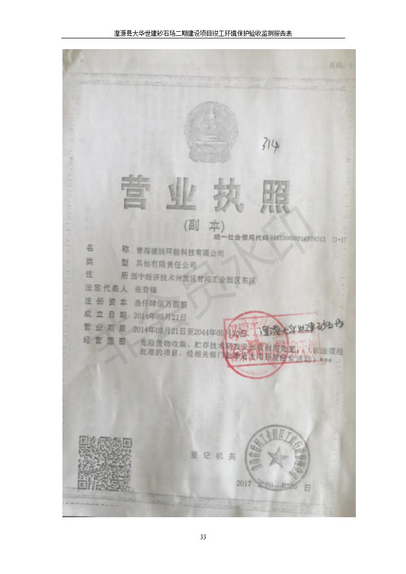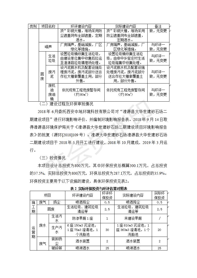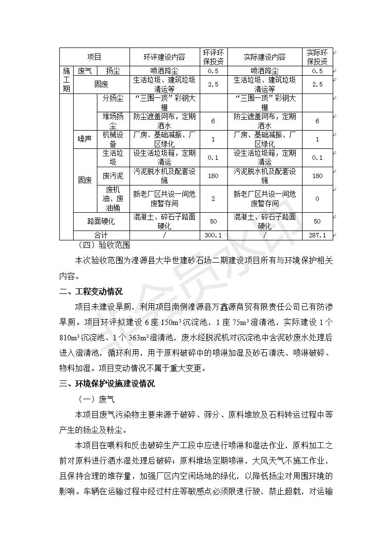 根據(jù)中華人民共和國國務(wù)院令第682號《國務(wù)院關(guān)于修改〈建設(shè)項(xiàng)目環(huán)境保護(hù)管理?xiàng)l例〉的決定》和《建設(shè)項(xiàng)目竣工環(huán)境保護(hù)驗(yàn)收暫行辦法》(國務(wù)院令682號),湟源大華世建砂石場湟源縣大華世建砂石場二期建設(shè)項(xiàng)目(包括竣工環(huán)境保護(hù)驗(yàn)收監(jiān)測報(bào)告表和驗(yàn)收意見)公示如下。 一、項(xiàng)目名稱:湟源縣大華世建砂石場二期建設(shè)項(xiàng)目 二、地點(diǎn):湟源縣申中鄉(xiāng)窯莊村沙崗大小灣 三、建設(shè)單位:湟源大華世建砂石場 四、建設(shè)內(nèi)容:項(xiàng)目主要建設(shè)砂石料產(chǎn)品加工生產(chǎn)區(qū)、原料堆場、產(chǎn)品堆場、辦公區(qū)等。五、聯(lián)系人:張工 六、聯(lián)系電 話:0971-6515411 七、公示時間:二〇一九年七月二十五日至二〇一九年八月二十一日公示期間,對上述公示內(nèi)容如有異議,請以書面形式反饋,個人須署真實(shí)姓名,單位須加蓋公章。