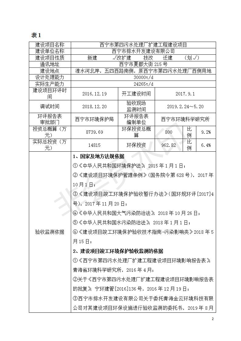 西寧市第四污水處理廠擴建工程建設(shè)項目竣工環(huán)境保護驗收監(jiān)測報告表公示發(fā)布日期:(2019-9-17) 點擊次數(shù):2733 |