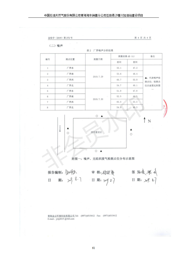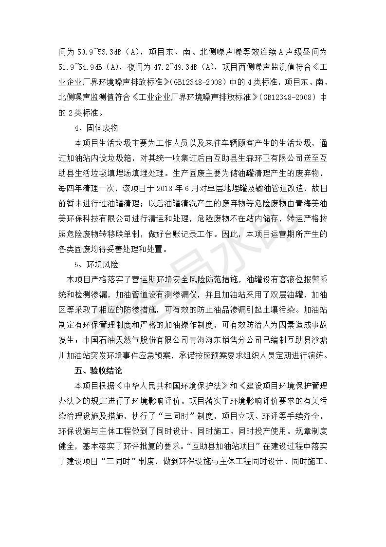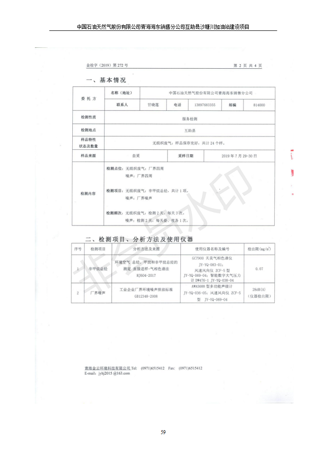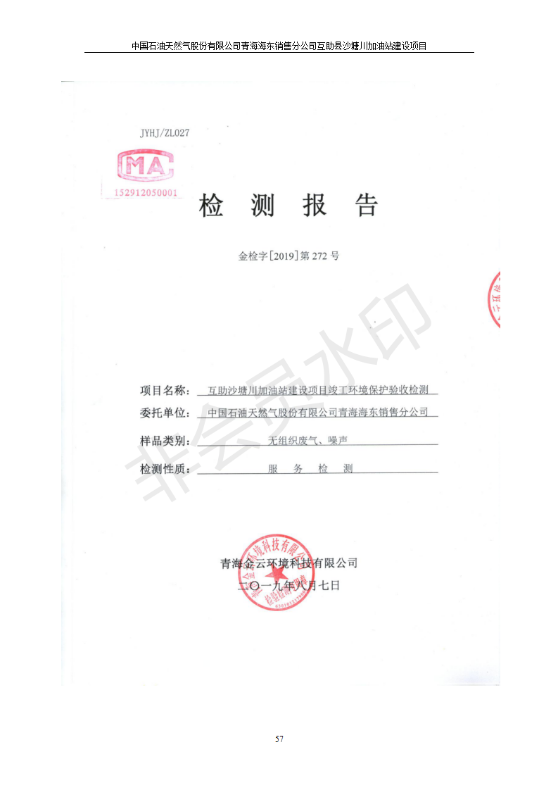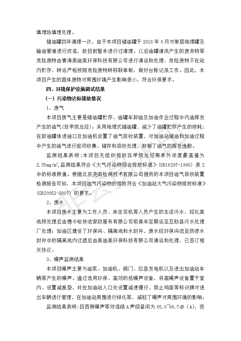 互助縣沙塘川加油站建設(shè)項(xiàng)目竣工環(huán)境保護(hù)驗(yàn)收監(jiān)測報(bào)告表發(fā)布日期:(2019-9-27) 點(diǎn)擊次數(shù):2250 |