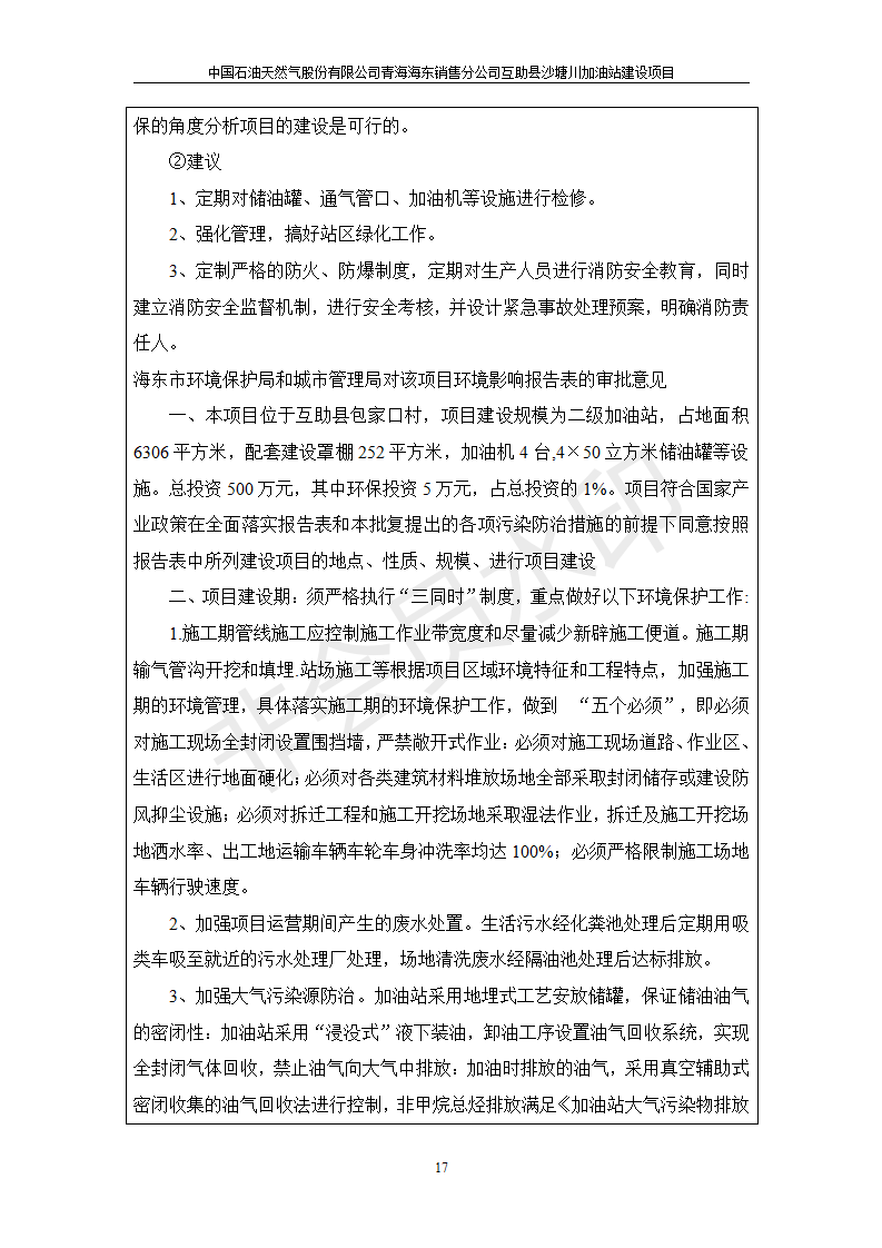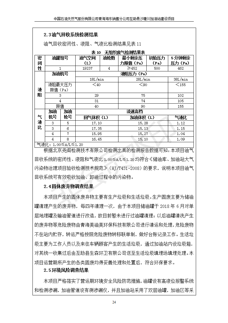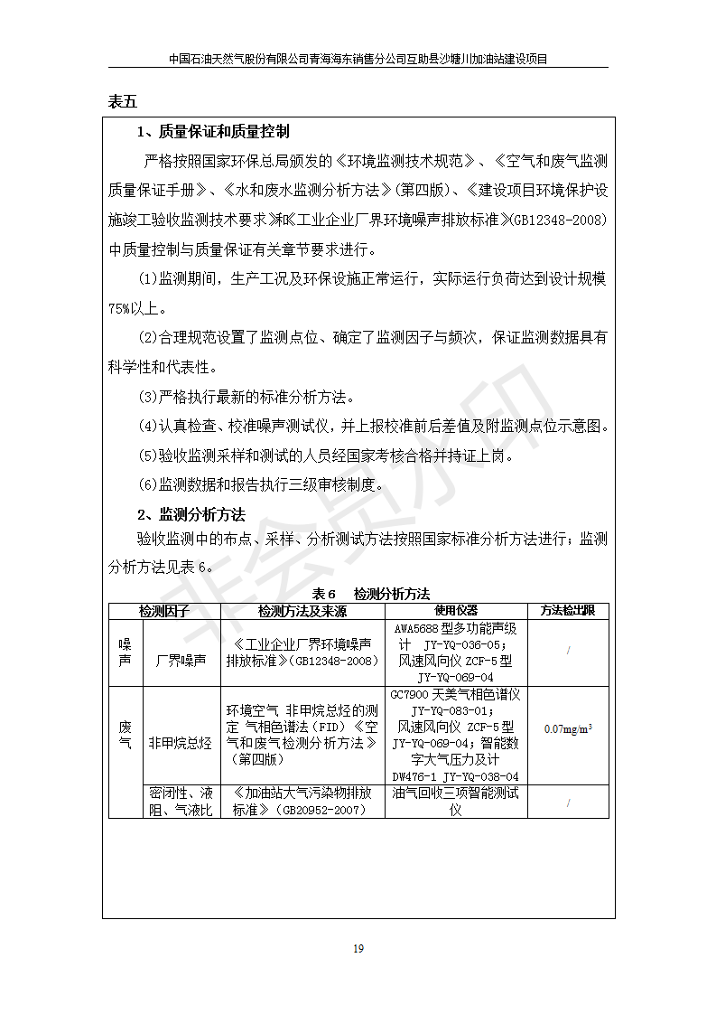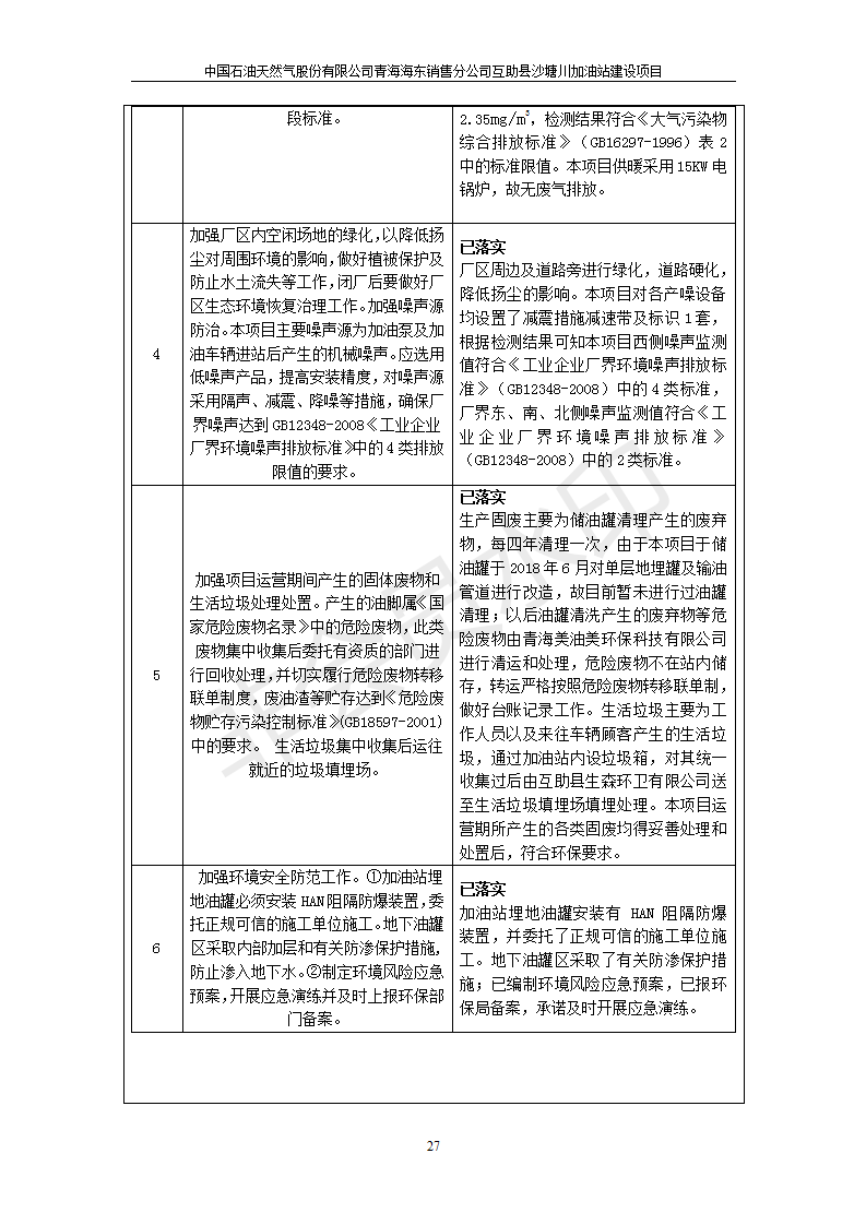 互助縣沙塘川加油站建設(shè)項(xiàng)目竣工環(huán)境保護(hù)驗(yàn)收監(jiān)測報(bào)告表發(fā)布日期:(2019-9-27) 點(diǎn)擊次數(shù):2250 |