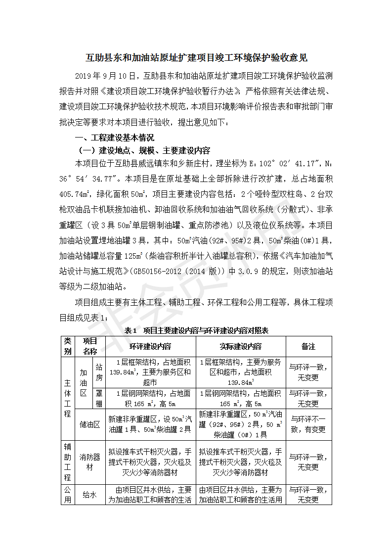 根據(jù)中華人民共和國國務院令第682號《國務院關于修改〈建設項目環(huán)境保護管理條例〉的決定》和《建設項目竣工環(huán)境保護驗收暫行辦法》(國務院令682號),互助縣東和加油站原址擴建項目(包括竣工環(huán)境保護驗收監(jiān)測報告表和驗收意見)公示如下。 一、項目名稱:互助縣東和加油站原址擴建項目 二、地點:互助縣威遠鎮(zhèn)東和鄉(xiāng)新莊村 六、聯(lián)系電話:0971-6515411 七、公示時間:二〇一九年九月二十七日至二〇一九年十月二十九日 公示期間,對上述公示內容如有異議,請以書面形式反饋,個人須署真實姓名,單位須加蓋公章。