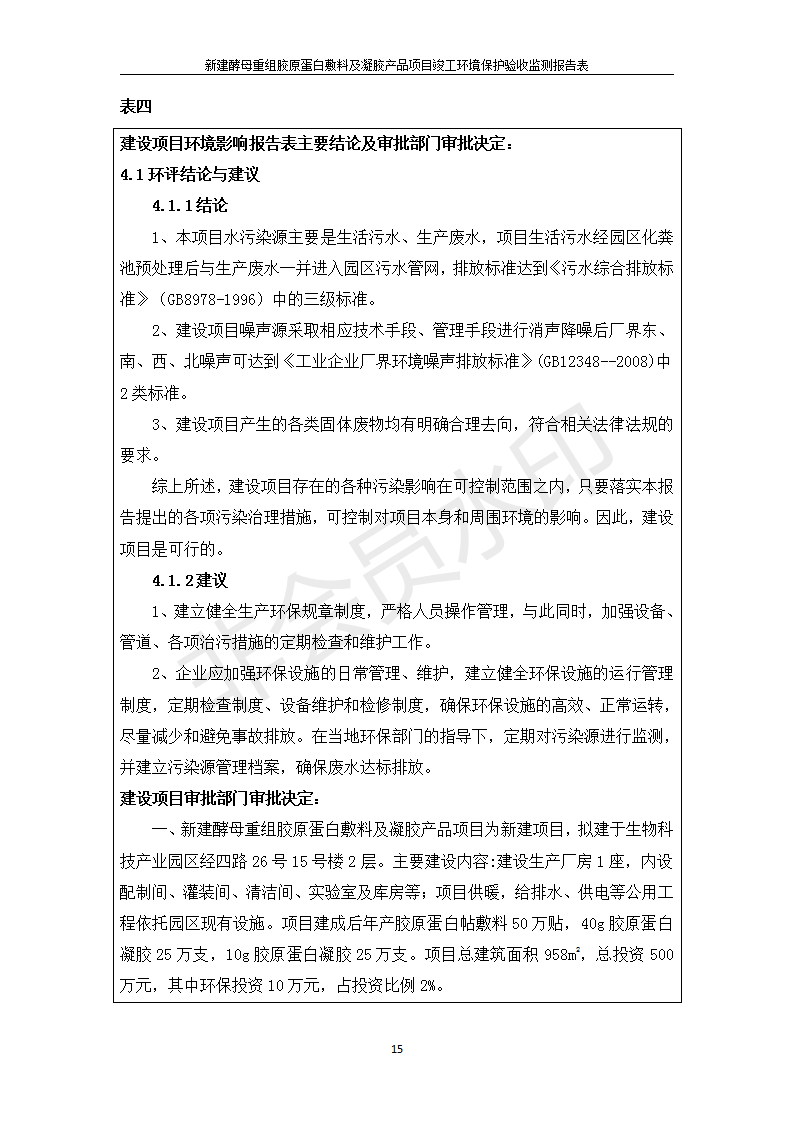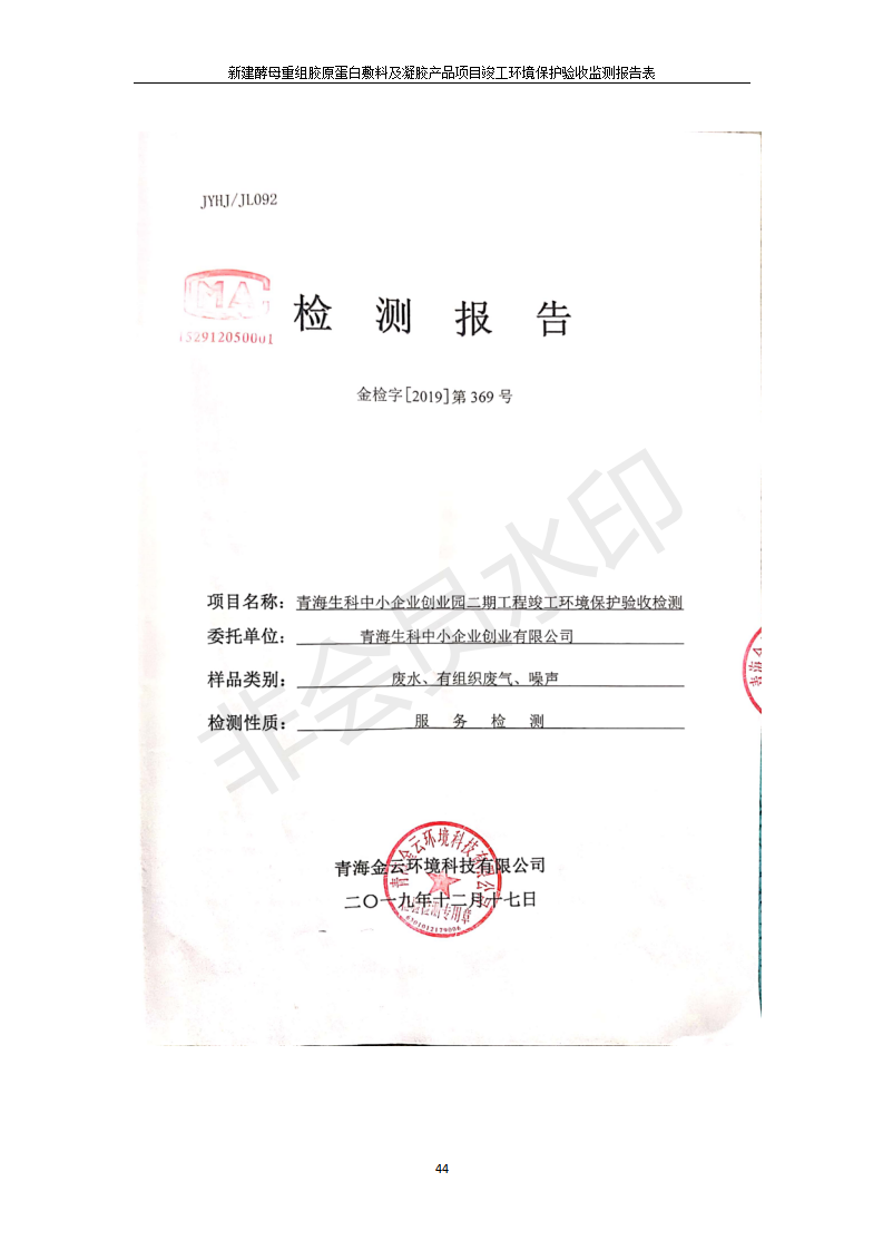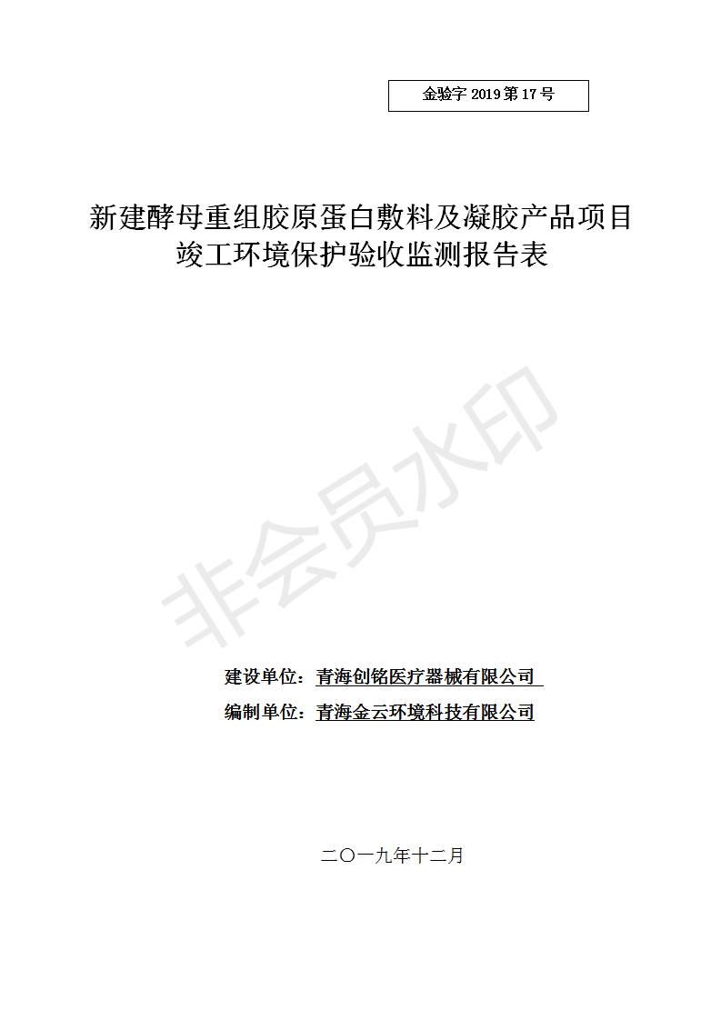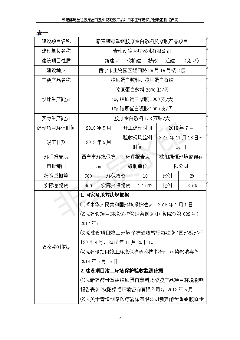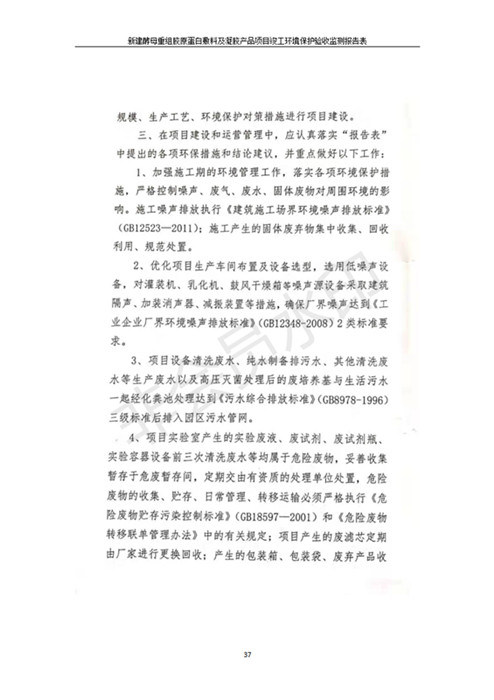 新建酵母重組膠原蛋白敷料及凝膠產(chǎn)品項(xiàng)目竣工環(huán)境保護(hù)驗(yàn)收監(jiān)測報(bào)告表公示發(fā)布日期:(2020-1-13) 點(diǎn)擊次數(shù):3840 |