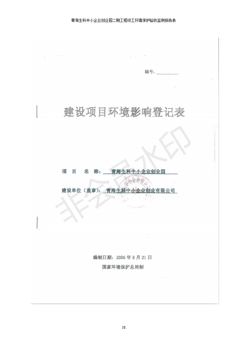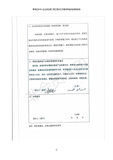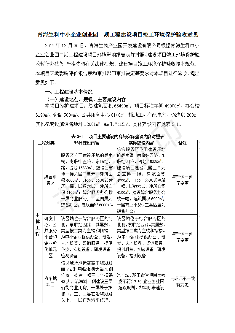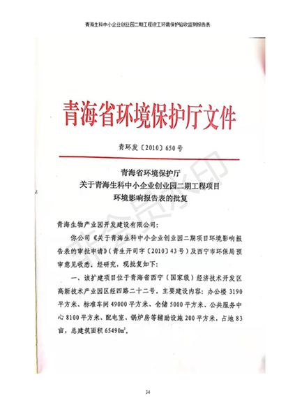 據(jù)中華人民共和國國務(wù)院令第682號《國務(wù)院關(guān)于修改〈建設(shè)項目環(huán)境保護管理條例〉的決定》和《建設(shè)項目竣工環(huán)境保護驗收暫行辦法》(國務(wù)院令682號),青海生科中小企業(yè)創(chuàng)業(yè)園二期工程建設(shè)項目(包括竣工環(huán)境保護驗收監(jiān)測報告表和驗收意見)公示如下。 一、項目名稱:青海生科中小企業(yè)創(chuàng)業(yè)園二期工程建設(shè)項目 二、地點:西寧市生物園區(qū)經(jīng)四路26號 五、聯(lián)系人:張憲周 六、聯(lián)系電話:13997290897 七、公示時間:二〇二〇年二月三日至二〇二〇年二月二十八日 公示期間,對上述公示內(nèi)容如有異議,請以書面形式反饋,個人須署真實姓名,單位須加蓋公章。