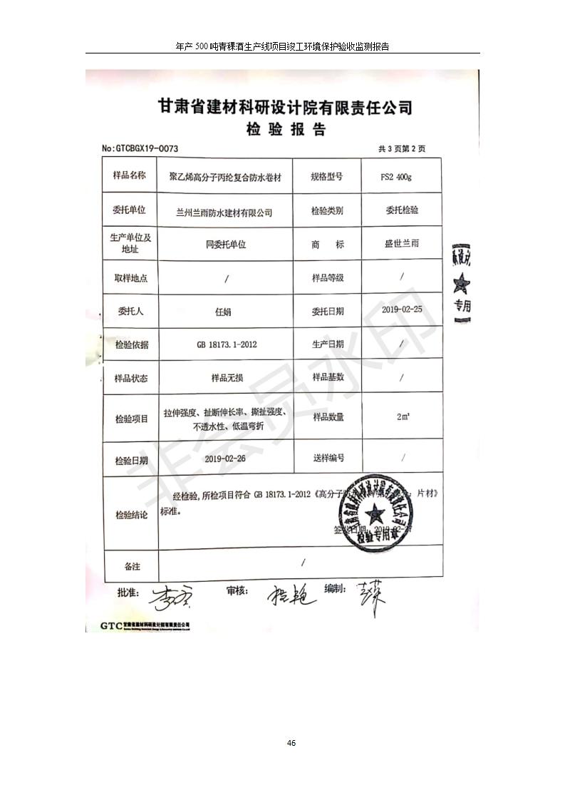 青;ブ⑶囡茦I(yè)有限公司年產(chǎn)500噸青稞酒業(yè)生產(chǎn)線建設(shè)項(xiàng)目竣工環(huán)境保護(hù)驗(yàn)收監(jiān)測報(bào)告表公示發(fā)布日期:(2020-4-27) 點(diǎn)擊次數(shù):2564 |