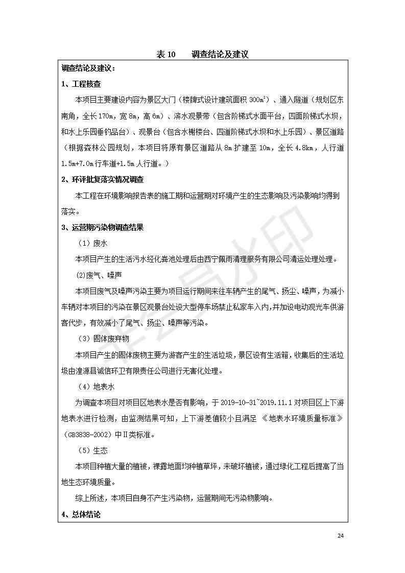 根據(jù)中華人民共和國(guó)國(guó)務(wù)院令第682號(hào)《國(guó)務(wù)院關(guān)于修改〈建設(shè)項(xiàng)目環(huán)境保護(hù)管理?xiàng)l例〉的決定》和《建設(shè)項(xiàng)目竣工環(huán)境保護(hù)驗(yàn)收暫行辦法》(國(guó)務(wù)院令682號(hào)),湟源海藏咽喉森林公園中心服務(wù)區(qū)改建項(xiàng)目(階段性),(包括竣工環(huán)境保護(hù)驗(yàn)收調(diào)查表和驗(yàn)收意見(jiàn))公示如下。 一、項(xiàng)目名稱:湟源海藏咽喉森林公園中心服務(wù)區(qū)改建項(xiàng)目(階段性) 竣工環(huán)境保護(hù)驗(yàn)收調(diào)查表 二、地點(diǎn):青海省湟源縣東峽鄉(xiāng)大黑溝 三、建設(shè)單位:西寧金大旅游開(kāi)發(fā)有限公司 四、建設(shè)內(nèi)容:本次階段性驗(yàn)收以自然景觀為主,建設(shè)內(nèi)容為濱水景觀帶、觀景臺(tái)、景區(qū)道路及基礎(chǔ)設(shè)施。項(xiàng)目范圍從景區(qū)大門(mén)至中心位置,全長(zhǎng)4800m。 五、聯(lián)系人:張工 六、聯(lián)系電 話:0971-6515411 七、公示時(shí)間:二〇二〇年四月二十九日至二〇二〇年五月二十八日 公示期間,對(duì)上述公示內(nèi)容如有異議,請(qǐng)以書(shū)面形式反饋,個(gè)人須署真實(shí)姓名,單位須加蓋公章。