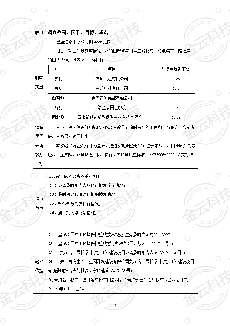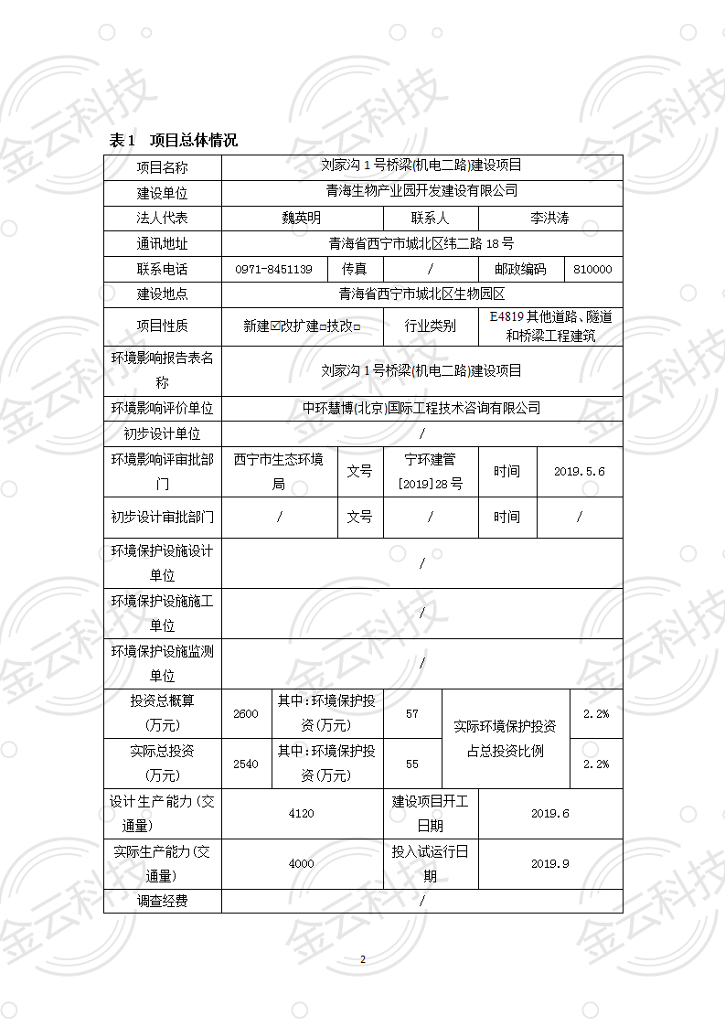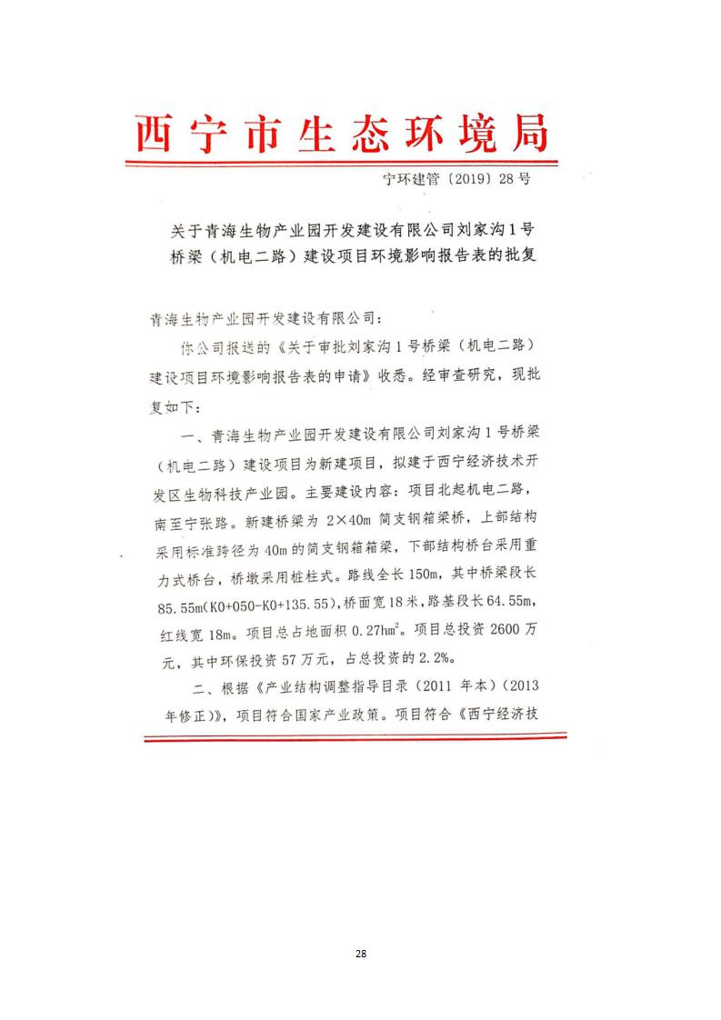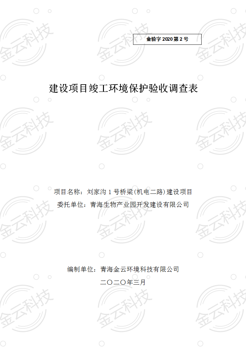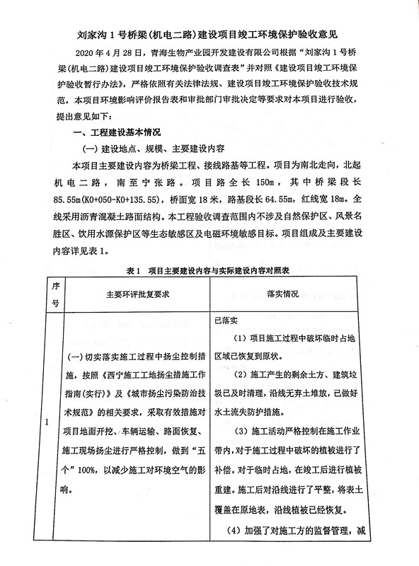 根據(jù)中華人民共和國國務院令第682號《國務院關(guān)于修改〈建設(shè)項目環(huán)境保護管理條例〉的決定》和《建設(shè)項目竣工環(huán)境保護驗收暫行辦法》(國務院令682號),劉家溝1號橋梁(機電二路)建設(shè)項目竣工環(huán)境保護驗收調(diào)查表,(包括竣工環(huán)境保護驗收調(diào)查表和驗收意見)公示如下。 一、項目名稱:劉家溝1號橋梁(機電二路)建設(shè)項目竣工環(huán)境保護驗收調(diào)查表 二、地點:青海省西寧市城北區(qū)生物園區(qū) 三、建設(shè)單位:青海生物產(chǎn)業(yè)園開發(fā)建設(shè)有限公司 四、建設(shè)內(nèi)容:本項目主要建設(shè)內(nèi)容為橋梁工程、接線路基等工程。項目南北走向,北起機電二路,南至寧張路,項目全長150m. 五、聯(lián)系人:張工 六、聯(lián)系電 話:0971-6515411 七、公示時間:二〇二〇年六月二日至二〇二〇年六月三十日 公示期間,對上述公示內(nèi)容如有異議,請以書面形式反饋,個人須署真實姓名,單位須加蓋公章。 |