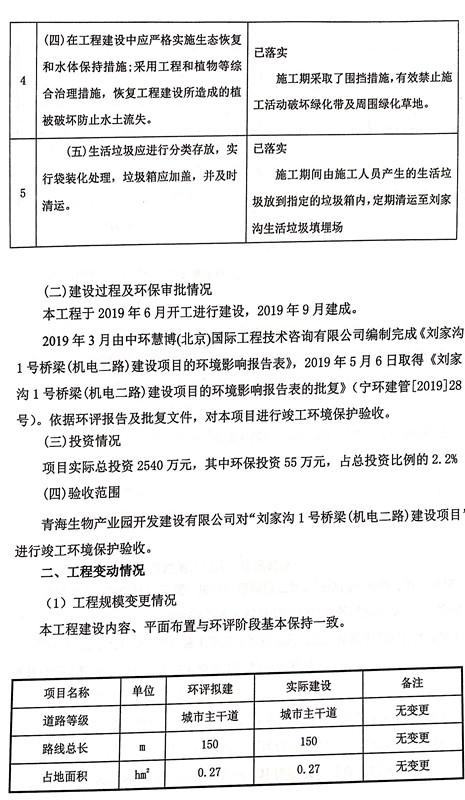 劉家溝1號橋梁(機電二路)建設(shè)項目竣工環(huán)境保護驗收調(diào)查表發(fā)布日期:(2020-6-2) 點擊次數(shù):3507 |